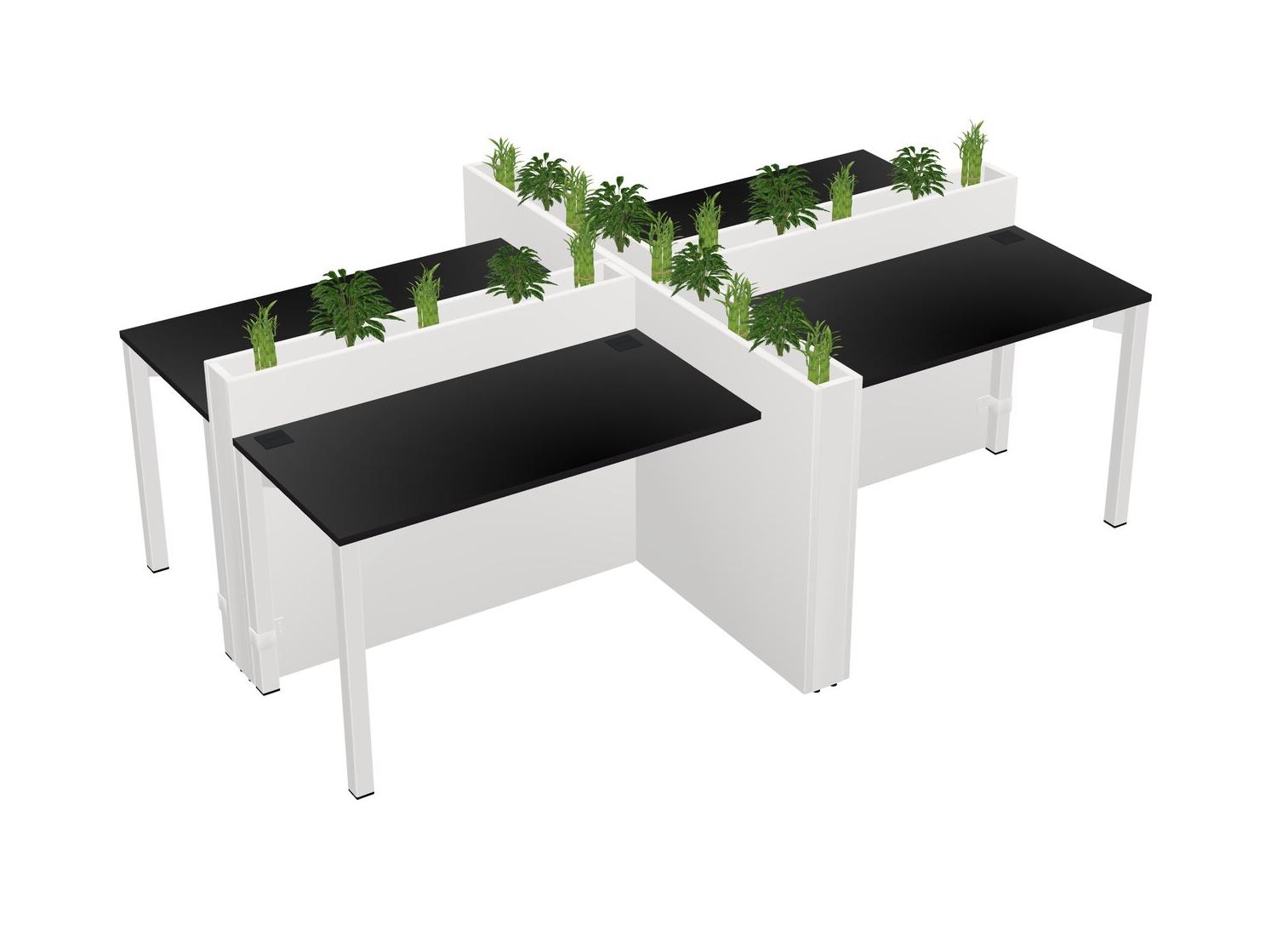 Black Rectangular Shared Office Desk For 4 Persons Let Nature Help Flourish Your Productivity The Base Comes With An Adjustable Shelf To Provide Space For Pots (Pots & Plants Sold Separately)