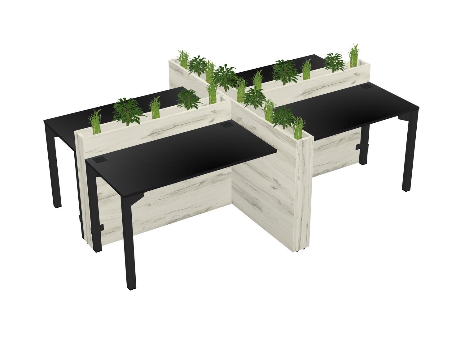 Black Rectangular Shared Office Desk For 4 Persons Let Nature Help Flourish Your Productivity The Base Comes With An Adjustable Shelf To Provide Space For Pots (Pots & Plants Sold Separately)