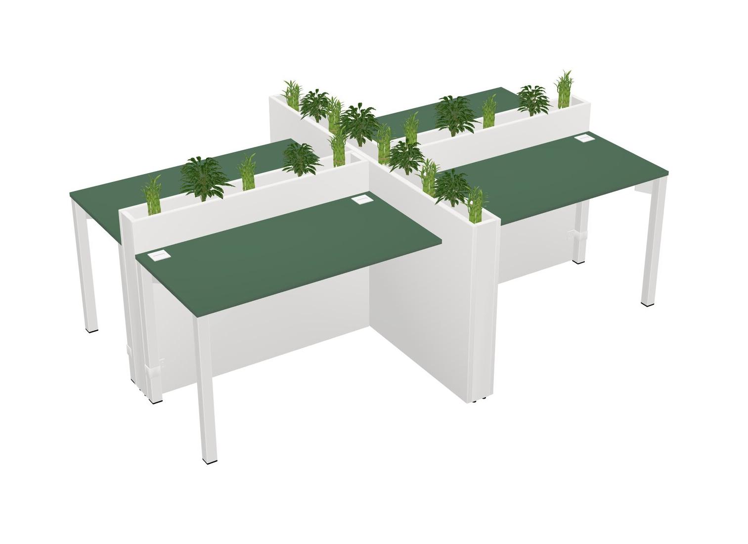 Green Rectangular Shared Office Desk For 4 Persons Let Nature Help Flourish Your Productivity The Base Comes With An Adjustable Shelf To Provide Space For Pots (Pots & Plants Sold Separately)