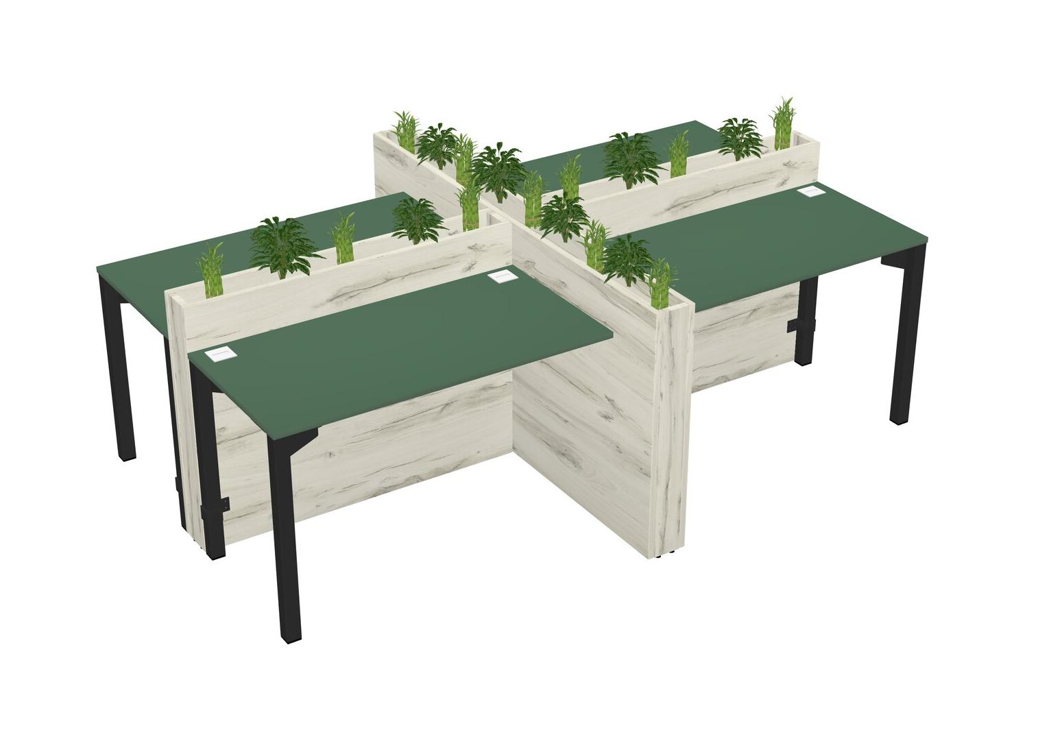 Green Rectangular Shared Office Desk For 4 Persons Let Nature Help Flourish Your Productivity The Base Comes With An Adjustable Shelf To Provide Space For Pots (Pots & Plants Sold Separately)