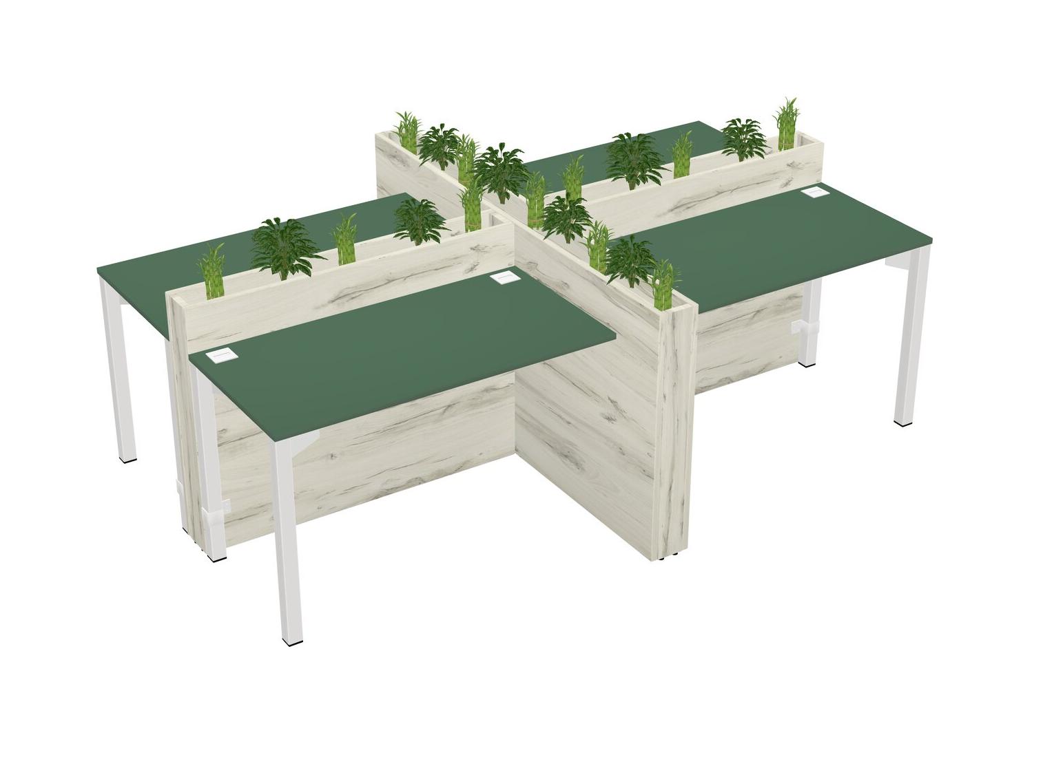 Green Rectangular Shared Office Desk For 4 Persons Let Nature Help Flourish Your Productivity The Base Comes With An Adjustable Shelf To Provide Space For Pots (Pots & Plants Sold Separately)