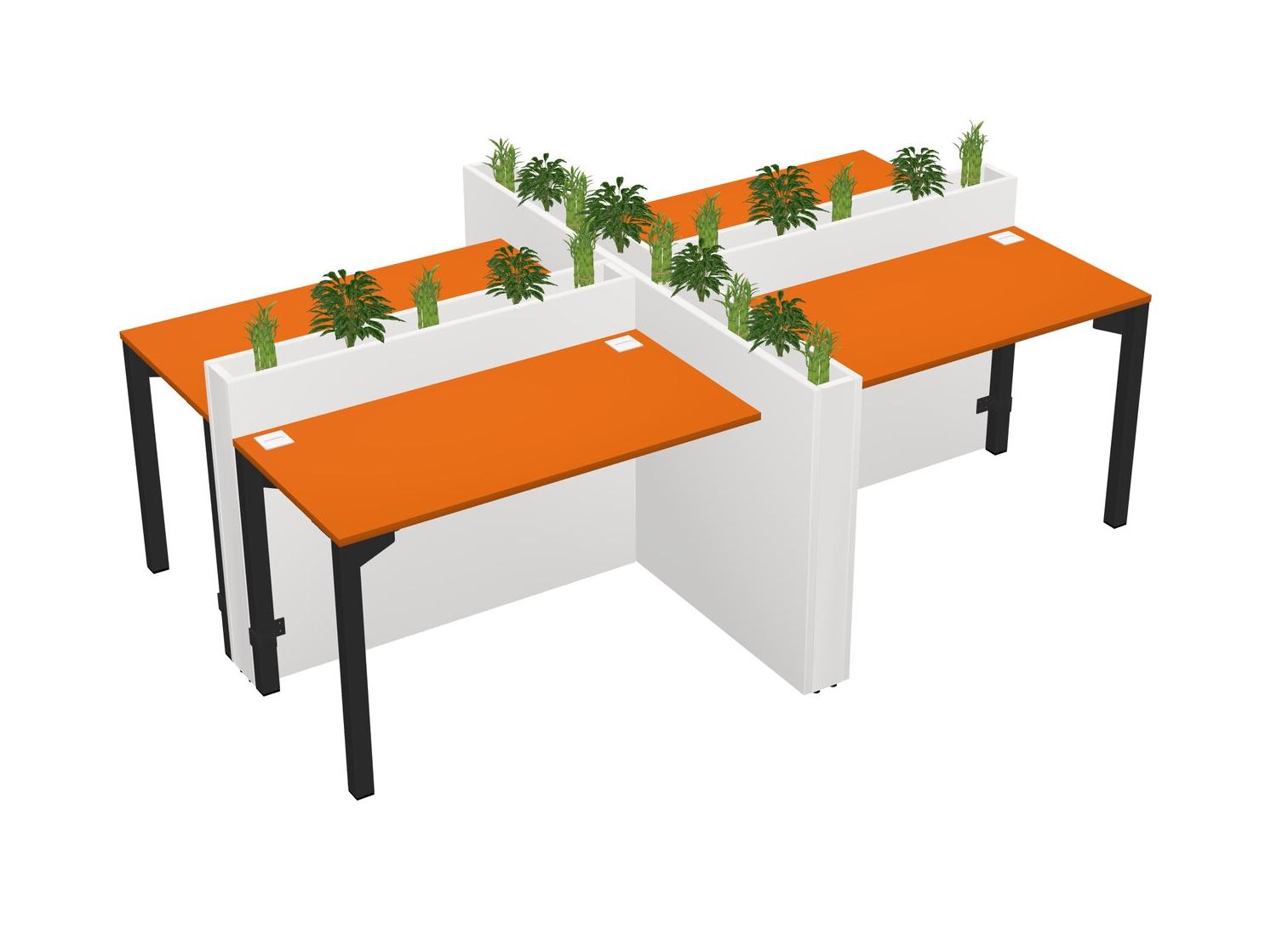 Orange Rectangular Shared Office Desk For 4 Persons Let Nature Help Flourish Your Productivity The Base Comes With An Adjustable Shelf To Provide Space For Pots (Pots & Plants Sold Separately)