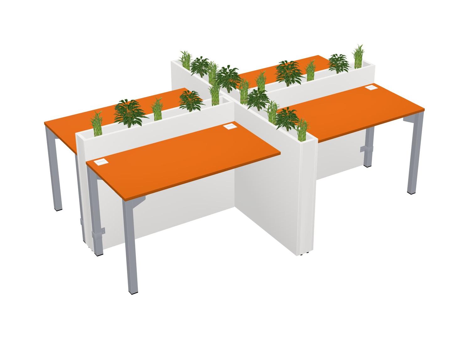 Orange Rectangular Shared Office Desk For 4 Persons Let Nature Help Flourish Your Productivity The Base Comes With An Adjustable Shelf To Provide Space For Pots (Pots & Plants Sold Separately)