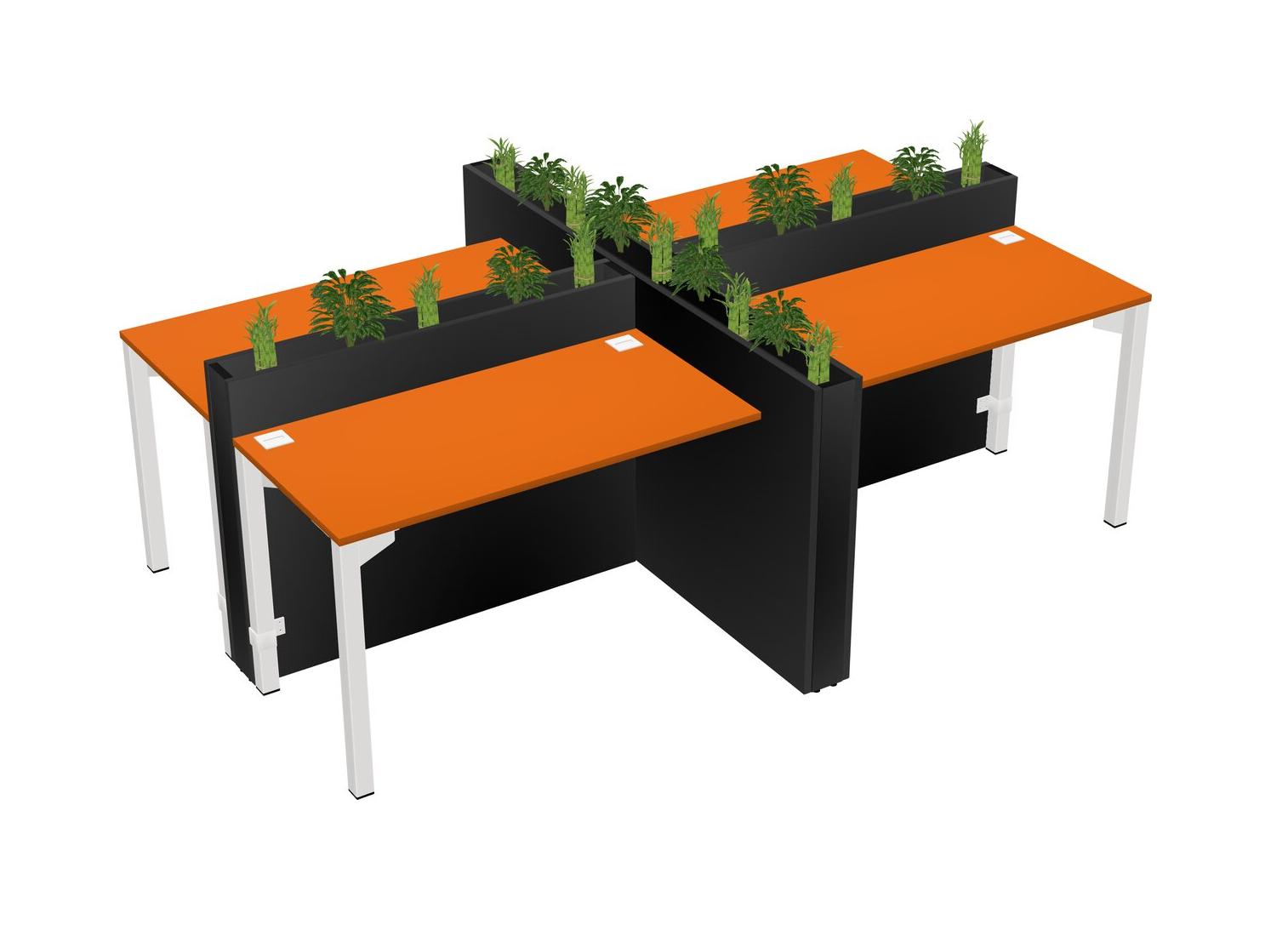 Orange Rectangular Shared Office Desk For 4 Persons Let Nature Help Flourish Your Productivity The Base Comes With An Adjustable Shelf To Provide Space For Pots (Pots & Plants Sold Separately)