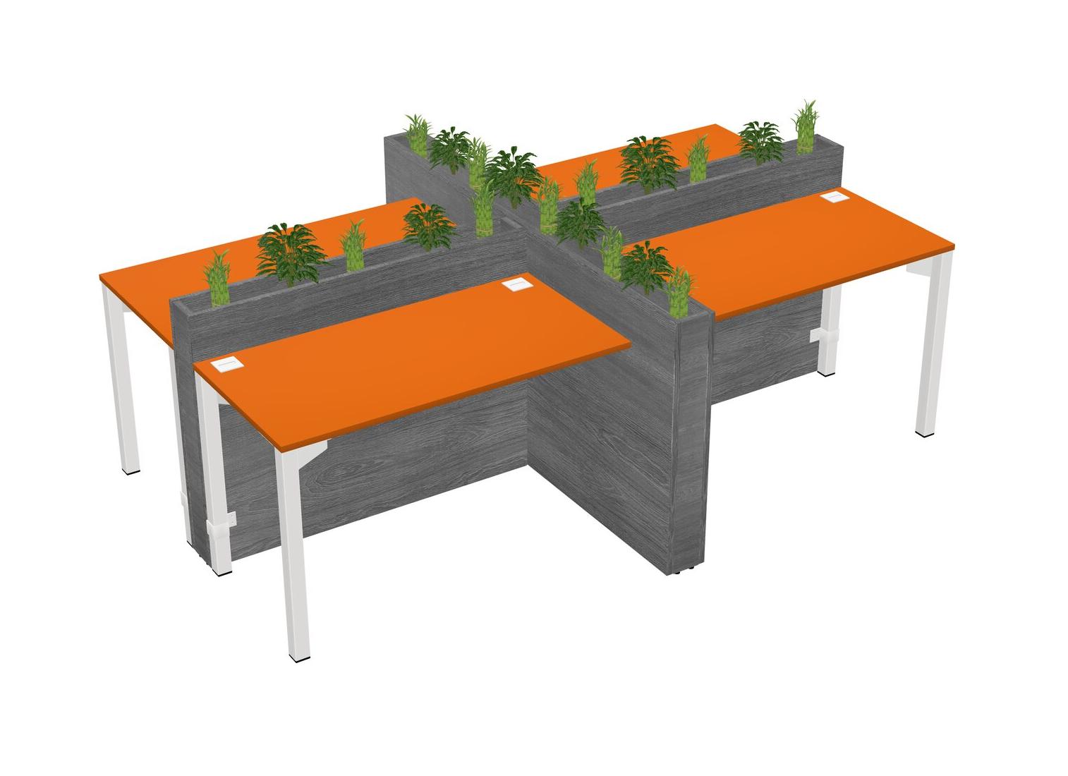 Orange Rectangular Shared Office Desk For 4 Persons Let Nature Help Flourish Your Productivity The Base Comes With An Adjustable Shelf To Provide Space For Pots (Pots & Plants Sold Separately)