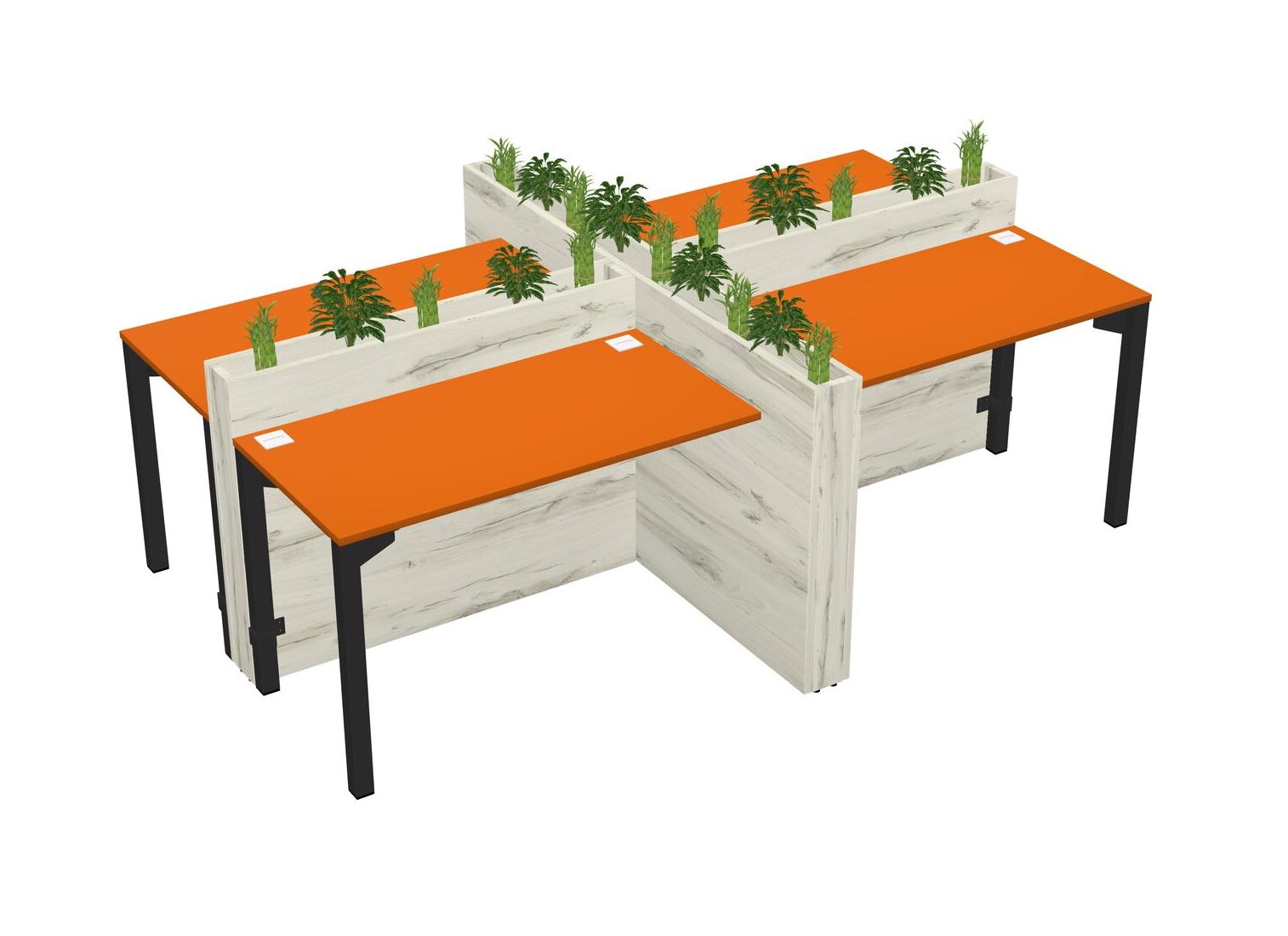 Orange Rectangular Shared Office Desk For 4 Persons Let Nature Help Flourish Your Productivity The Base Comes With An Adjustable Shelf To Provide Space For Pots (Pots & Plants Sold Separately)