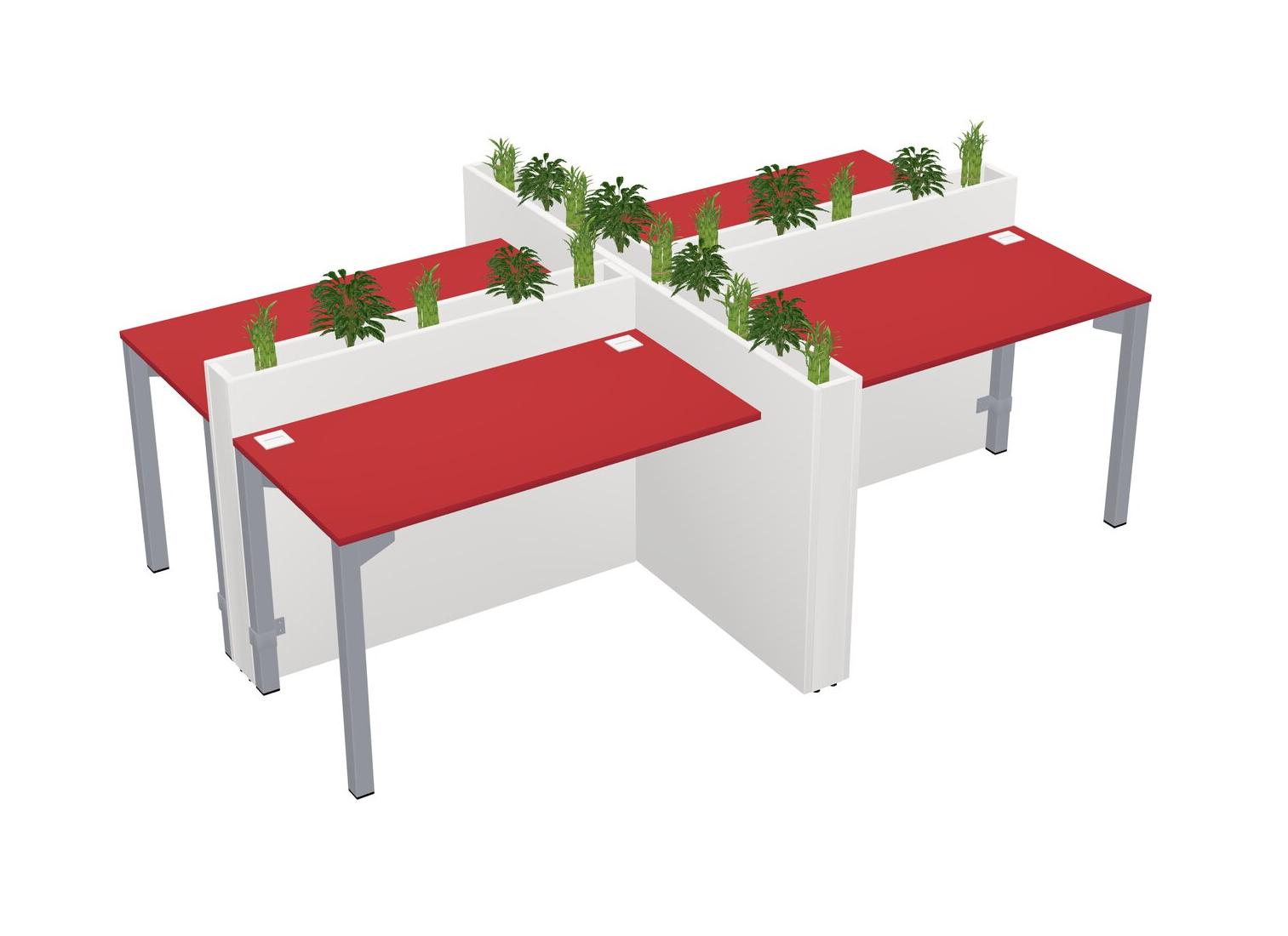 Prism Red Rectangular Shared Office Desk For 4 Persons Let Nature Help Flourish Your Productivity The Base Comes With An Adjustable Shelf To Provide Space For Pots (Pots & Plants Sold Separately)