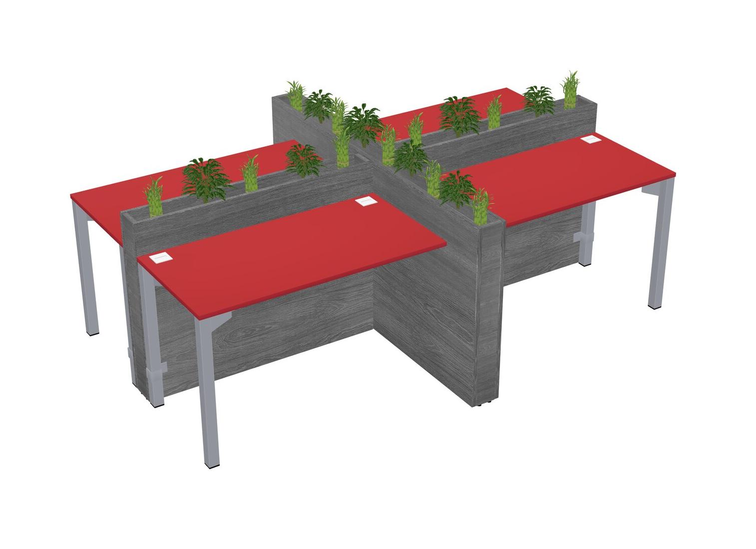 Prism Red Rectangular Shared Office Desk For 4 Persons Let Nature Help Flourish Your Productivity The Base Comes With An Adjustable Shelf To Provide Space For Pots (Pots & Plants Sold Separately)