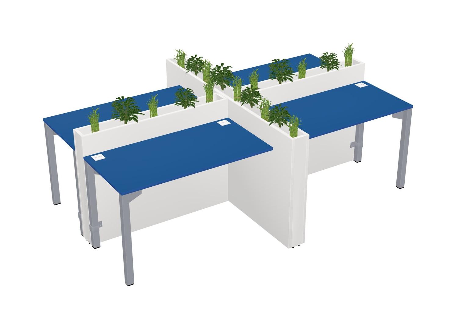 Prism Blue Rectangular Shared Office Desk For 4 Persons Let Nature Help Flourish Your Productivity The Base Comes With An Adjustable Shelf To Provide Space For Pots (Pots & Plants Sold Separately)