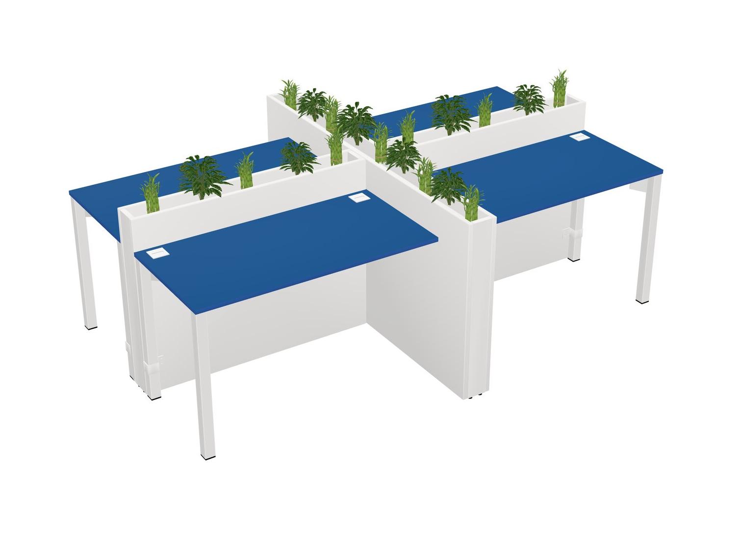Prism Blue Rectangular Shared Office Desk For 4 Persons Let Nature Help Flourish Your Productivity The Base Comes With An Adjustable Shelf To Provide Space For Pots (Pots & Plants Sold Separately)