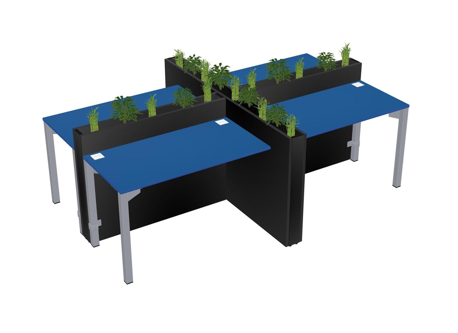 Prism Blue Rectangular Shared Office Desk For 4 Persons Let Nature Help Flourish Your Productivity The Base Comes With An Adjustable Shelf To Provide Space For Pots (Pots & Plants Sold Separately)