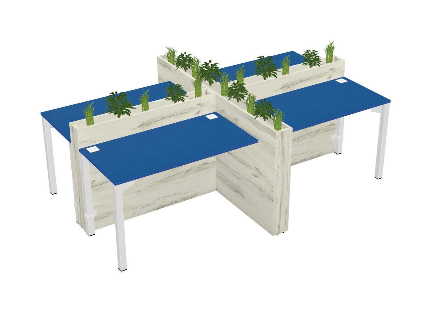 Prism Blue Rectangular Shared Office Desk For 4 Persons Let Nature Help Flourish Your Productivity The Base Comes With An Adjustable Shelf To Provide Space For Pots (Pots & Plants Sold Separately)