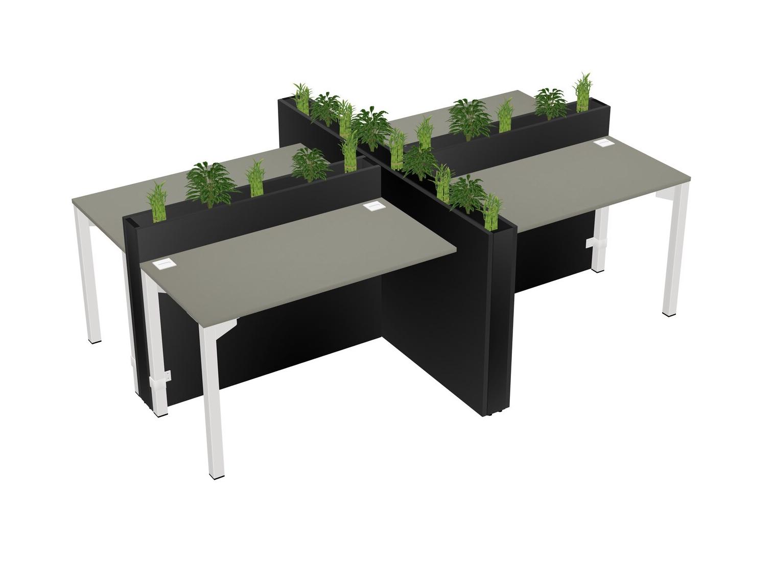 Grey Shadows Rectangular Shared Office Desk For 4 Persons Let Nature Help Flourish Your Productivity The Base Comes With An Adjustable Shelf To Provide Space For Pots (Pots & Plants Sold Separately)
