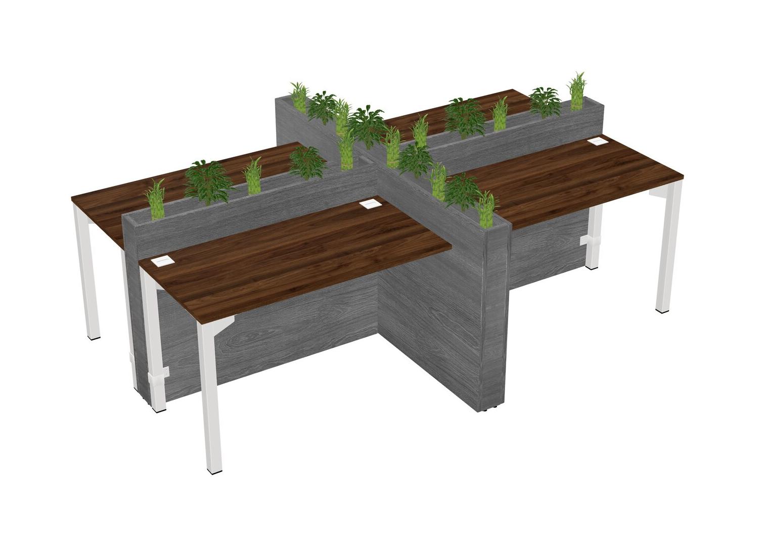Columbia Walnut Rectangular Shared Office Desk For 4 Persons Let Nature Help Flourish Your Productivity The Base Comes With An Adjustable Shelf To Provide Space For Pots (Pots & Plants Sold Separately)