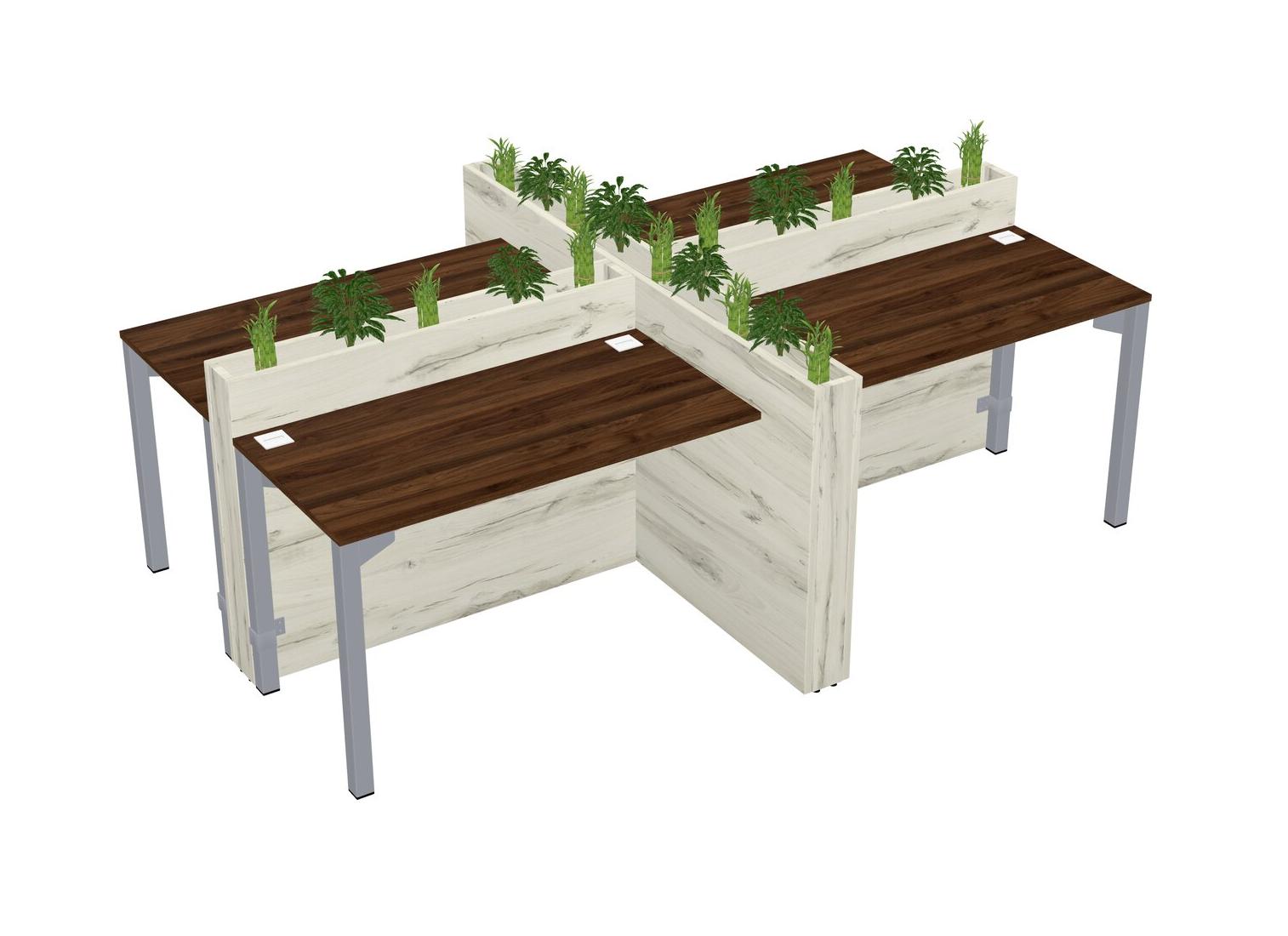 Columbia Walnut Rectangular Shared Office Desk For 4 Persons Let Nature Help Flourish Your Productivity The Base Comes With An Adjustable Shelf To Provide Space For Pots (Pots & Plants Sold Separately)