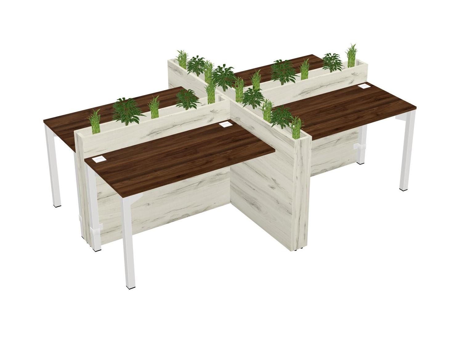 Columbia Walnut Rectangular Shared Office Desk For 4 Persons Let Nature Help Flourish Your Productivity The Base Comes With An Adjustable Shelf To Provide Space For Pots (Pots & Plants Sold Separately)