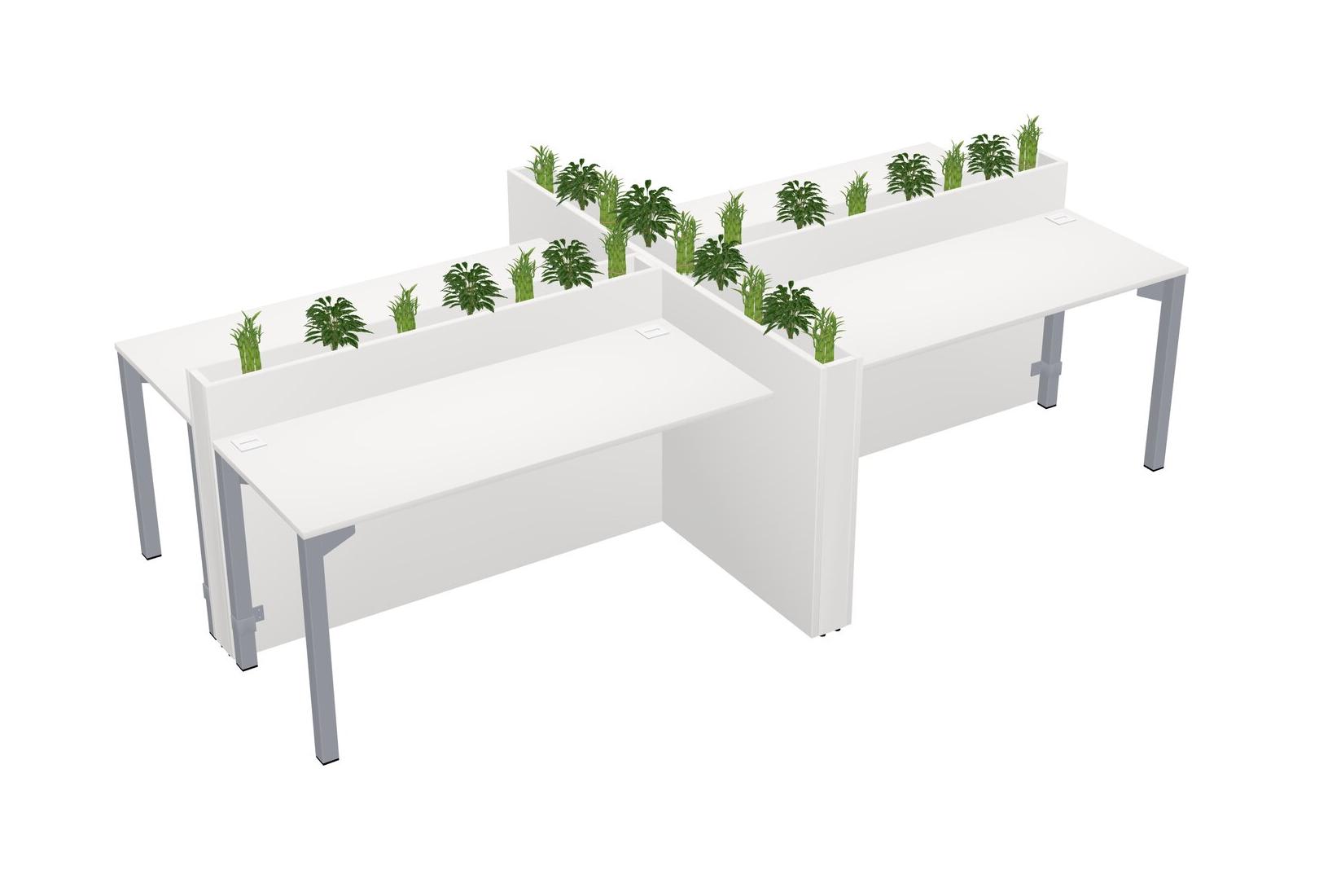 White Rectangular Shared Office Desk For 4 Persons Let Nature Help Flourish Your Productivity The Base Comes With An Adjustable Shelf To Provide Space For Pots (Pots & Plants Sold Separately)