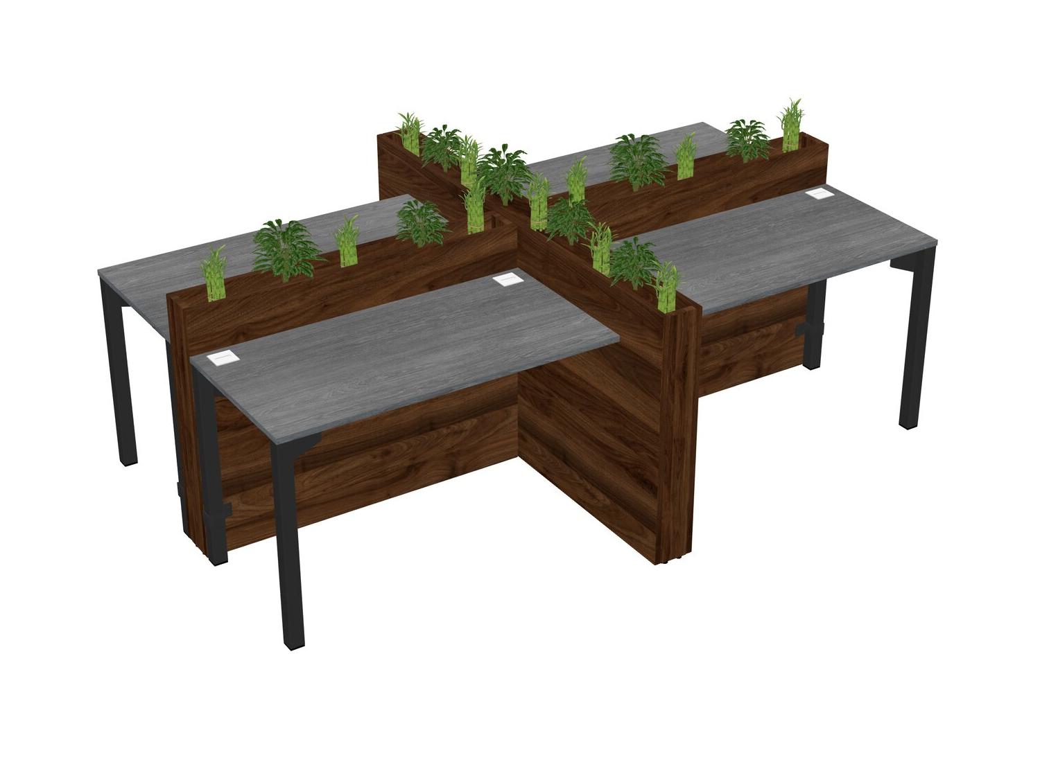 Grey Rectangular Shared Office Desk For 4 Persons Let Nature Help Flourish Your Productivity The Base Comes With An Adjustable Shelf To Provide Space For Pots (Pots & Plants Sold Separately)