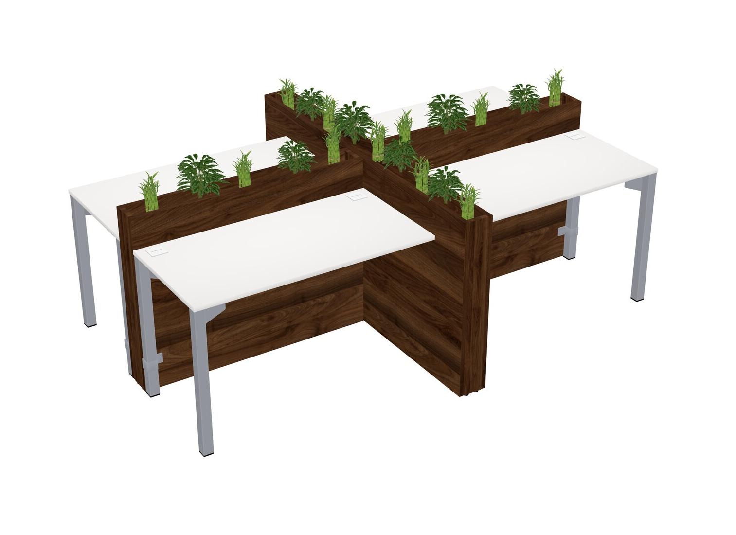 White Rectangular Shared Office Desk For 4 Persons Let Nature Help Flourish Your Productivity The Base Comes With An Adjustable Shelf To Provide Space For Pots (Pots & Plants Sold Separately)