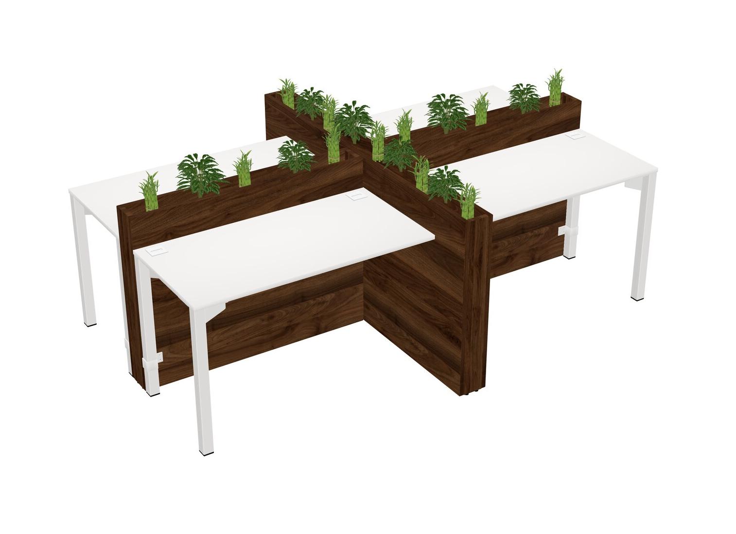 White Rectangular Shared Office Desk For 4 Persons Let Nature Help Flourish Your Productivity The Base Comes With An Adjustable Shelf To Provide Space For Pots (Pots & Plants Sold Separately)