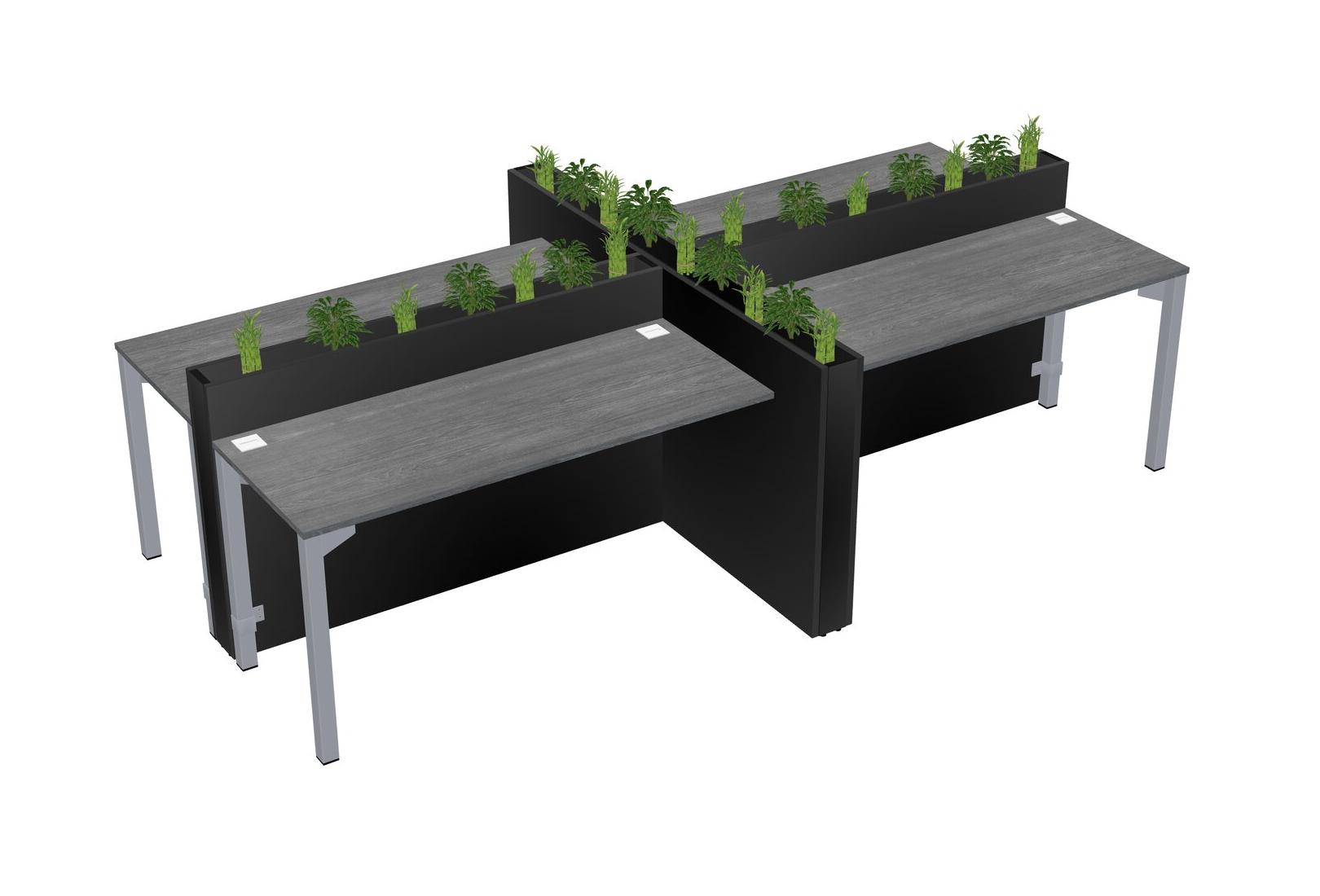 Grey Rectangular Shared Office Desk For 4 Persons Let Nature Help Flourish Your Productivity The Base Comes With An Adjustable Shelf To Provide Space For Pots (Pots & Plants Sold Separately)