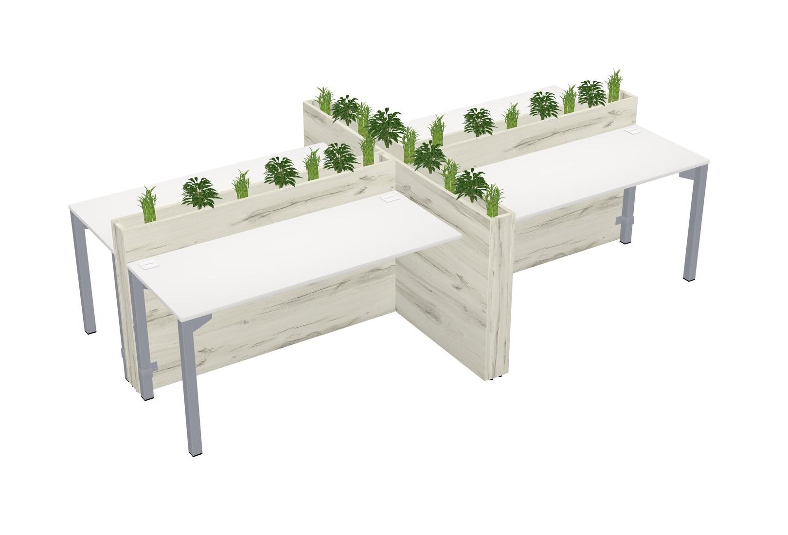 White Rectangular Shared Office Desk For 4 Persons Let Nature Help Flourish Your Productivity The Base Comes With An Adjustable Shelf To Provide Space For Pots (Pots & Plants Sold Separately)