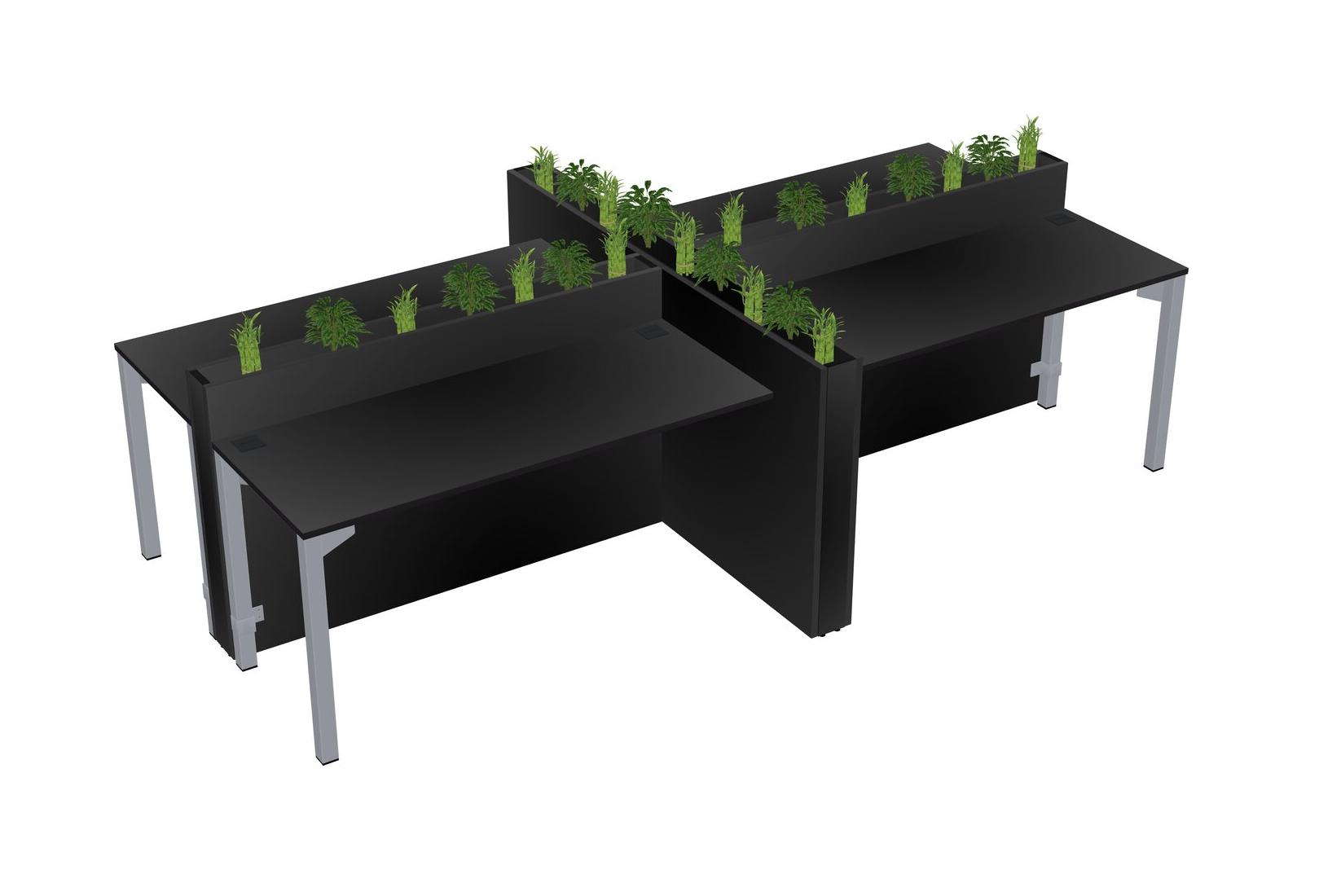 Black Rectangular Shared Office Desk For 4 Persons Let Nature Help Flourish Your Productivity The Base Comes With An Adjustable Shelf To Provide Space For Pots (Pots & Plants Sold Separately)