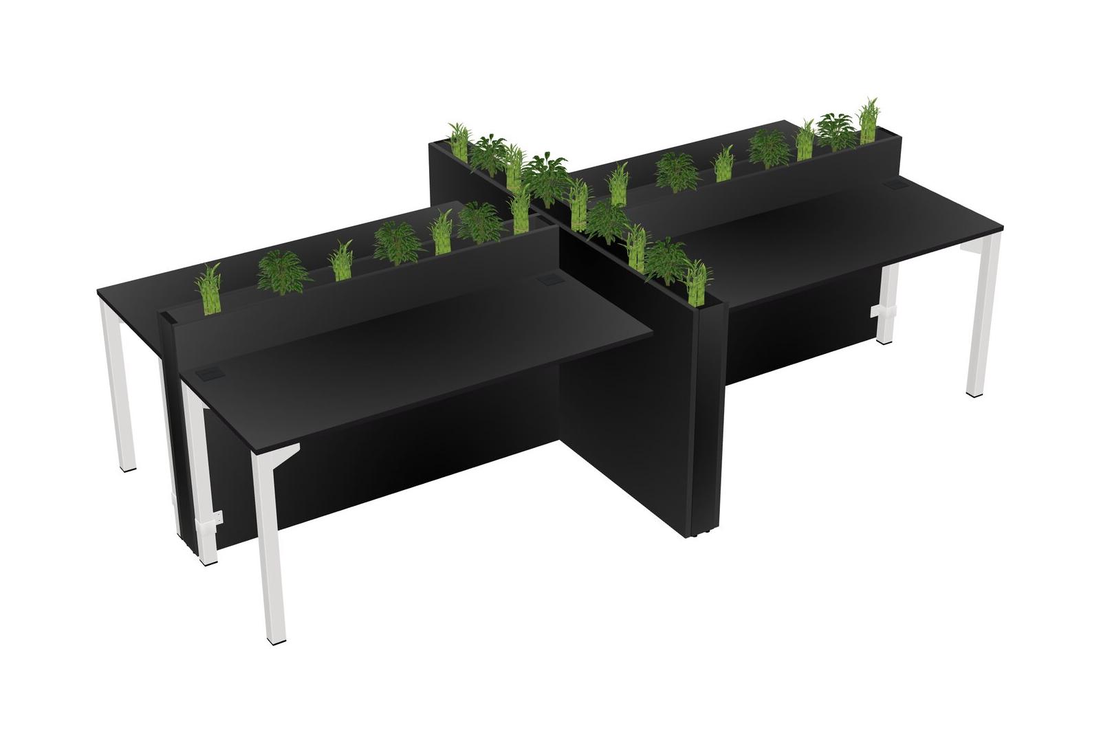 Black Rectangular Shared Office Desk For 4 Persons Let Nature Help Flourish Your Productivity The Base Comes With An Adjustable Shelf To Provide Space For Pots (Pots & Plants Sold Separately)