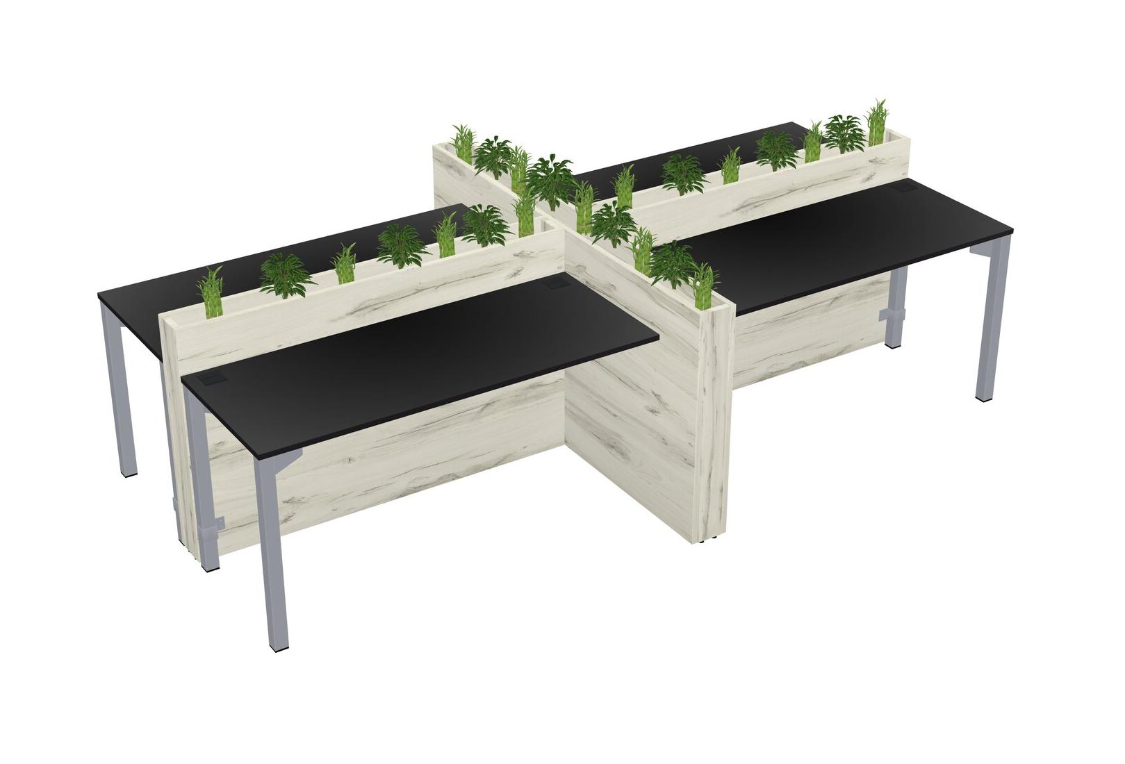 Black Rectangular Shared Office Desk For 4 Persons Let Nature Help Flourish Your Productivity The Base Comes With An Adjustable Shelf To Provide Space For Pots (Pots & Plants Sold Separately)