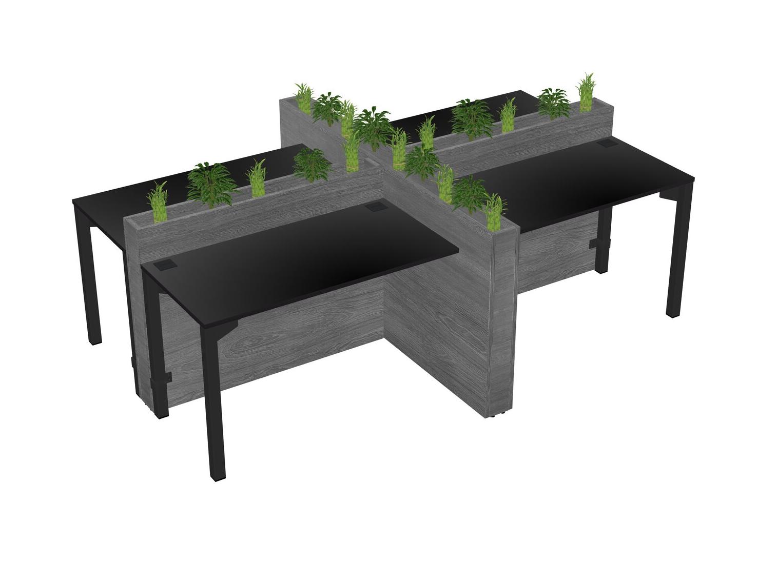 Black Rectangular Shared Office Desk For 4 Persons Let Nature Help Flourish Your Productivity The Base Comes With An Adjustable Shelf To Provide Space For Pots (Pots & Plants Sold Separately)