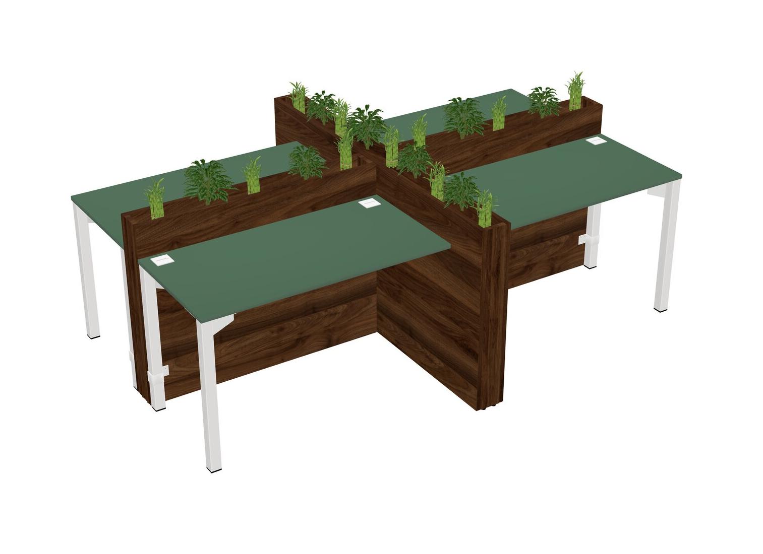 Green Rectangular Shared Office Desk For 4 Persons Let Nature Help Flourish Your Productivity The Base Comes With An Adjustable Shelf To Provide Space For Pots (Pots & Plants Sold Separately)