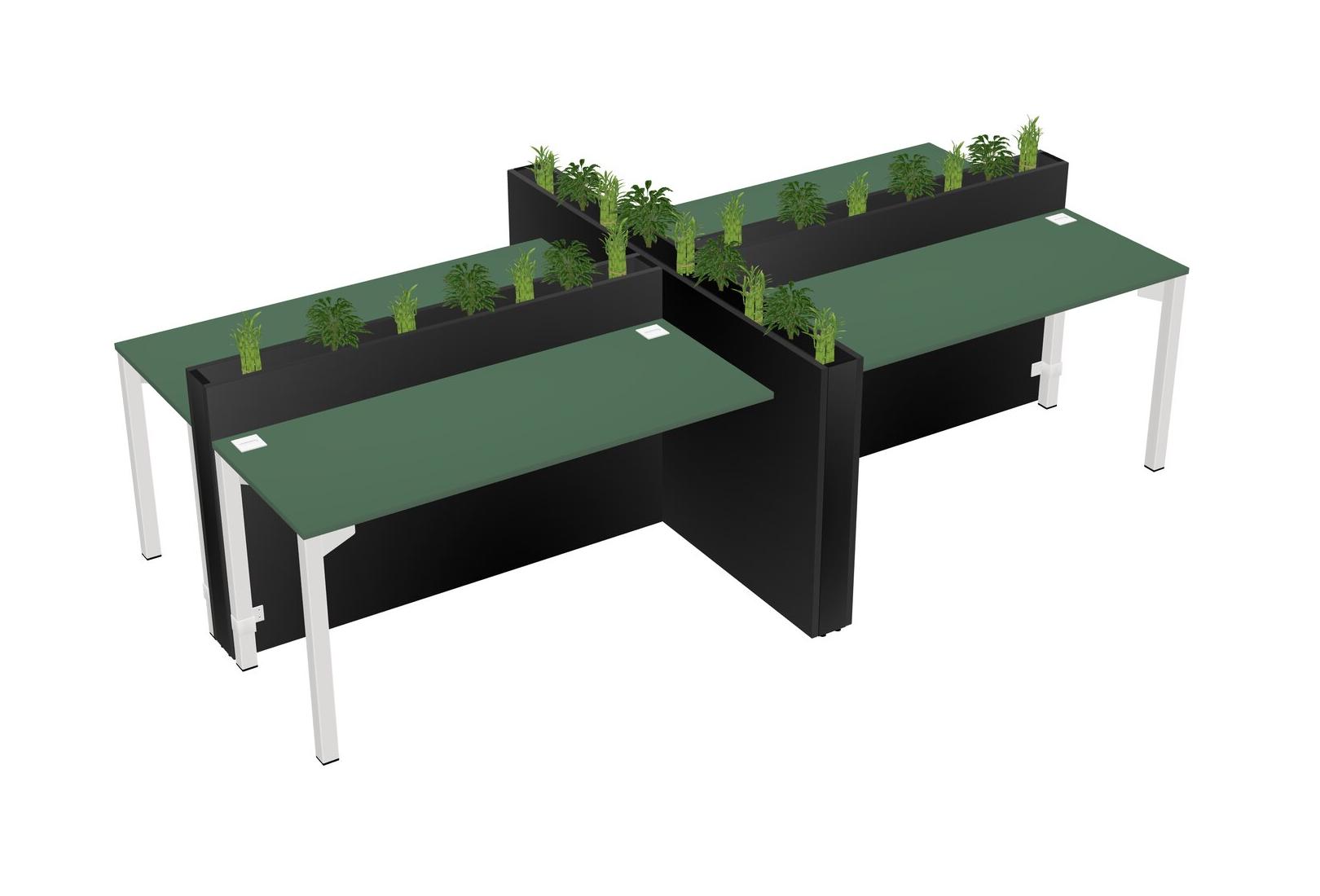 Green Rectangular Shared Office Desk For 4 Persons Let Nature Help Flourish Your Productivity The Base Comes With An Adjustable Shelf To Provide Space For Pots (Pots & Plants Sold Separately)