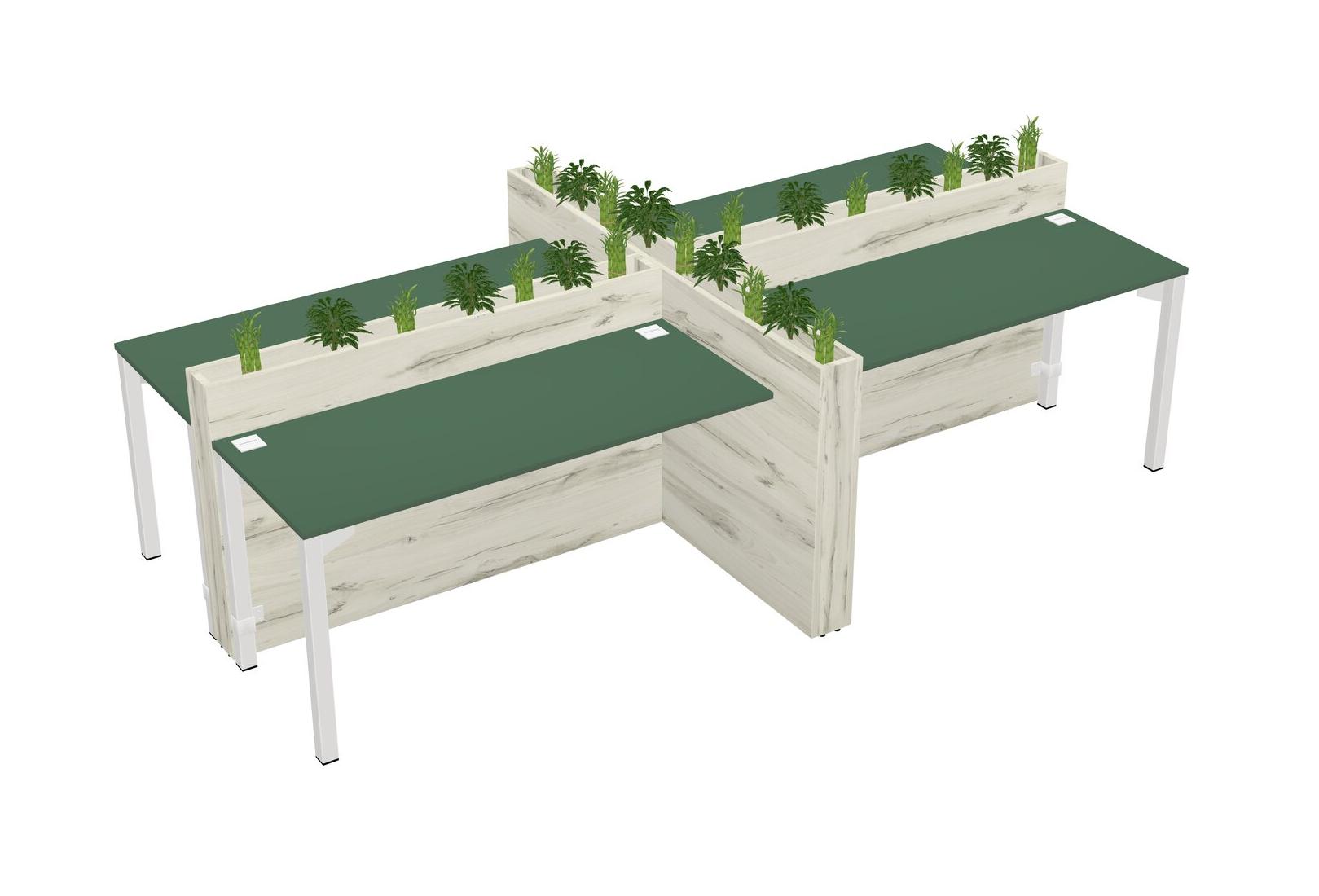 Green Rectangular Shared Office Desk For 4 Persons Let Nature Help Flourish Your Productivity The Base Comes With An Adjustable Shelf To Provide Space For Pots (Pots & Plants Sold Separately)