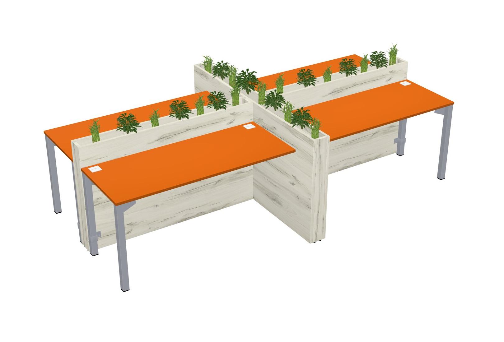 Orange Rectangular Shared Office Desk For 4 Persons Let Nature Help Flourish Your Productivity The Base Comes With An Adjustable Shelf To Provide Space For Pots (Pots & Plants Sold Separately)