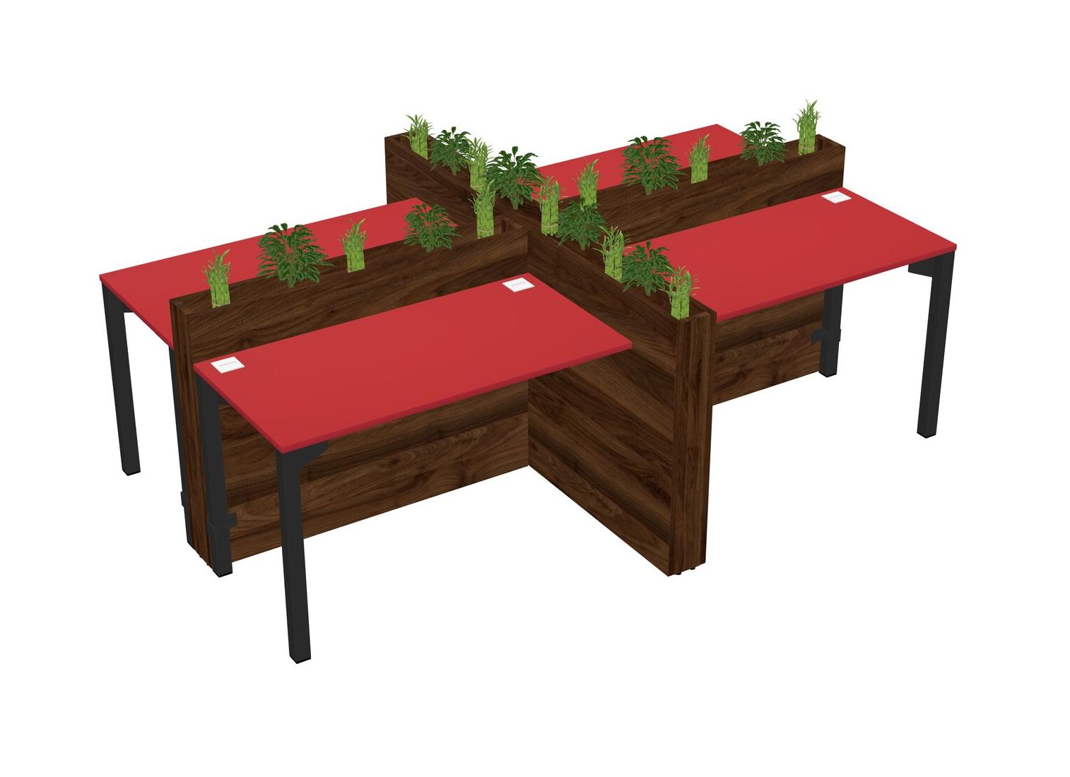 Prism Red Rectangular Shared Office Desk For 4 Persons Let Nature Help Flourish Your Productivity The Base Comes With An Adjustable Shelf To Provide Space For Pots (Pots & Plants Sold Separately)