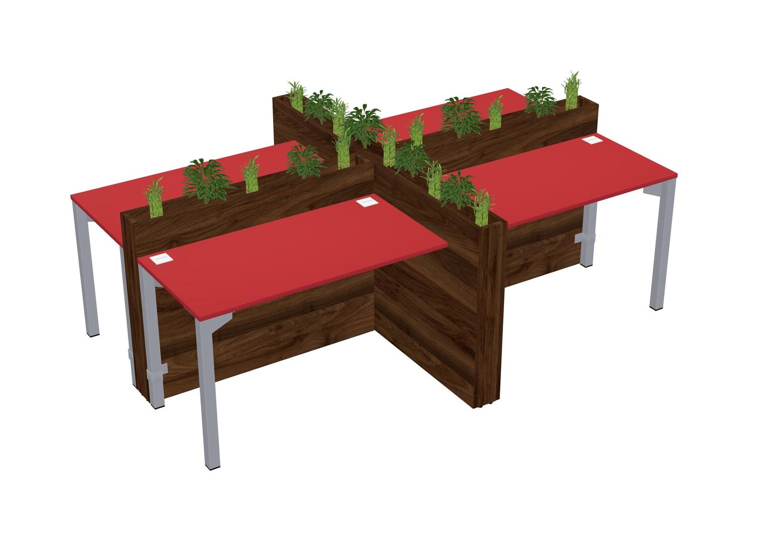 Prism Red Rectangular Shared Office Desk For 4 Persons Let Nature Help Flourish Your Productivity The Base Comes With An Adjustable Shelf To Provide Space For Pots (Pots & Plants Sold Separately)