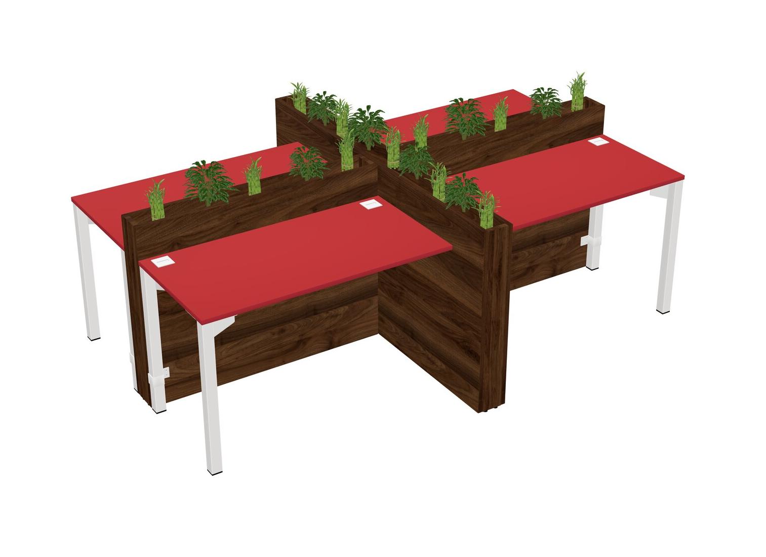 Prism Red Rectangular Shared Office Desk For 4 Persons Let Nature Help Flourish Your Productivity The Base Comes With An Adjustable Shelf To Provide Space For Pots (Pots & Plants Sold Separately)