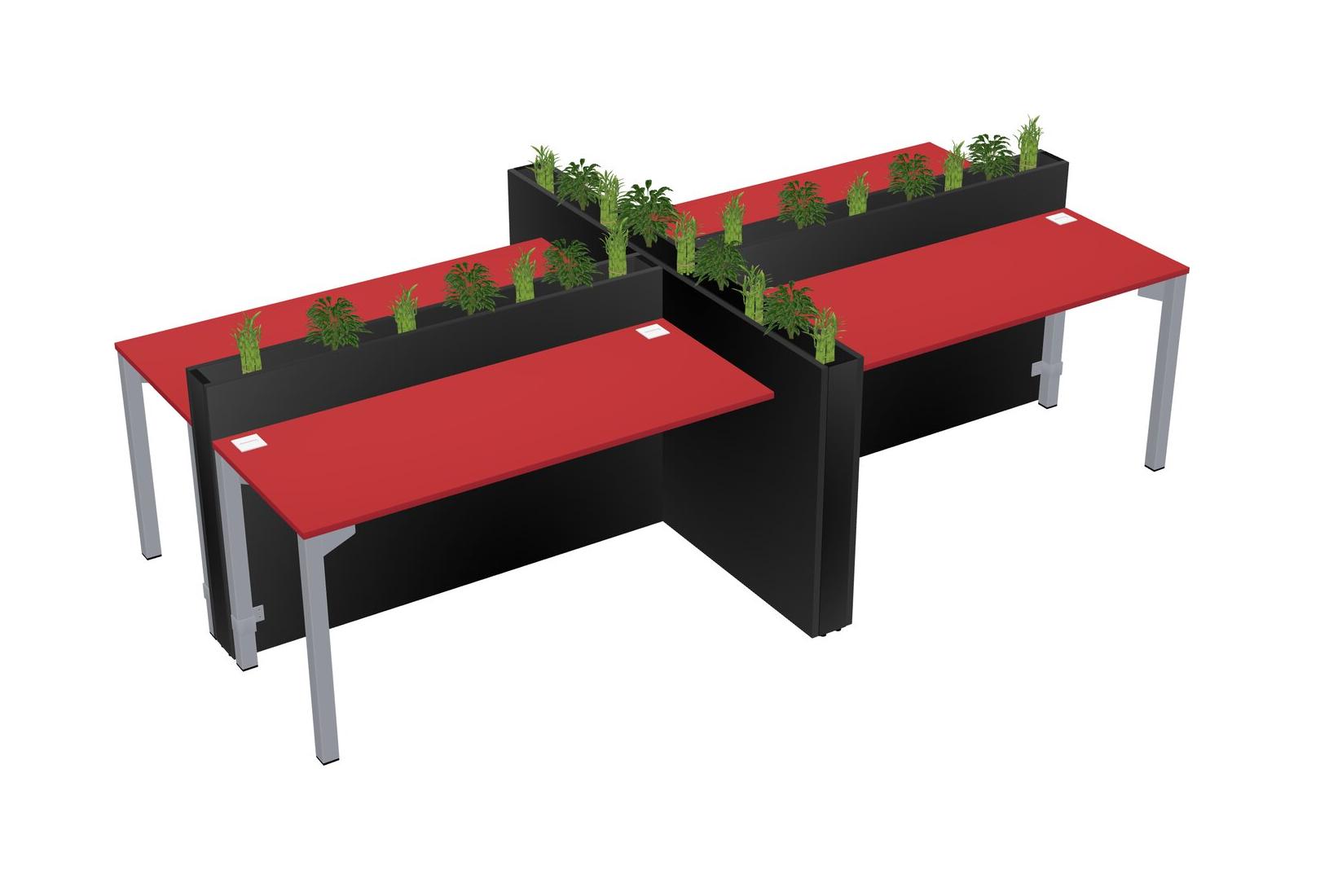 Prism Red Rectangular Shared Office Desk For 4 Persons Let Nature Help Flourish Your Productivity The Base Comes With An Adjustable Shelf To Provide Space For Pots (Pots & Plants Sold Separately)