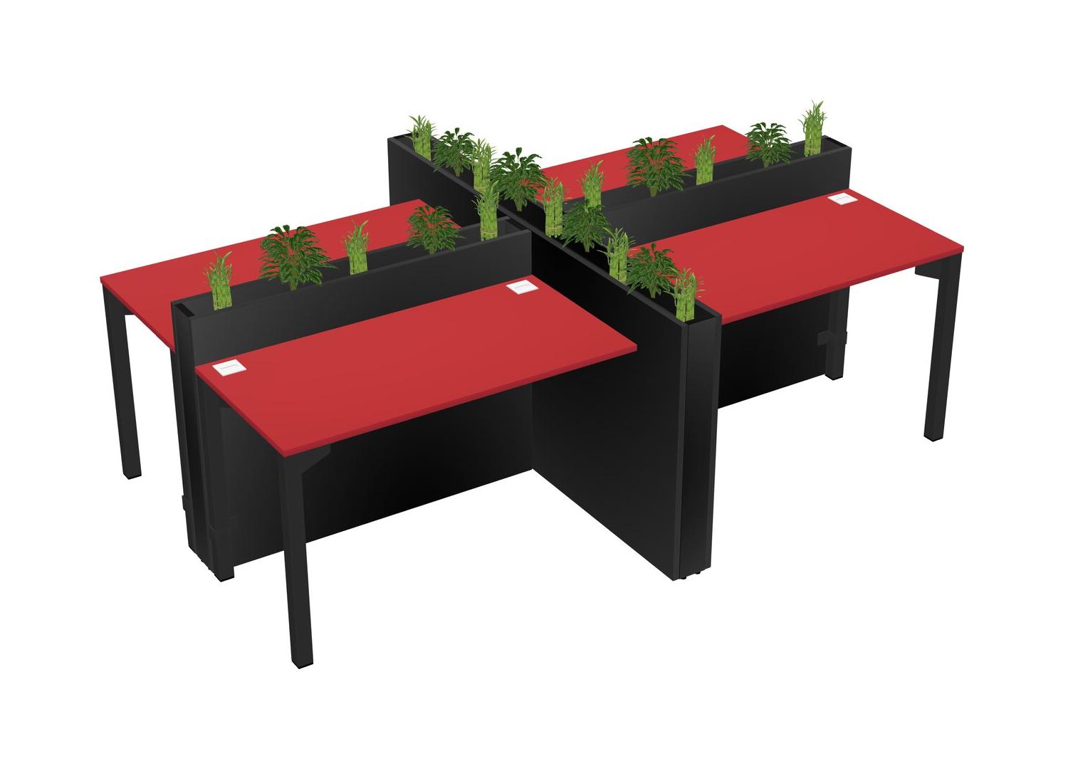 Prism Red Rectangular Shared Office Desk For 4 Persons Let Nature Help Flourish Your Productivity The Base Comes With An Adjustable Shelf To Provide Space For Pots (Pots & Plants Sold Separately)