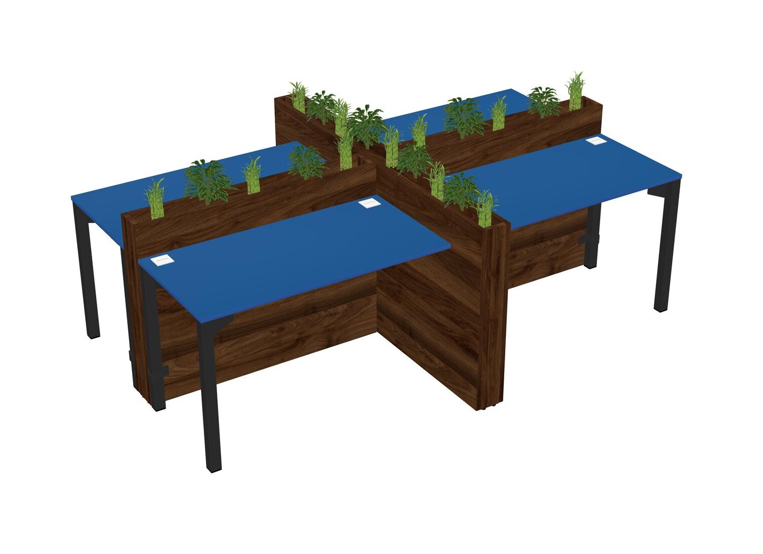 Prism Blue Rectangular Shared Office Desk For 4 Persons Let Nature Help Flourish Your Productivity The Base Comes With An Adjustable Shelf To Provide Space For Pots (Pots & Plants Sold Separately)