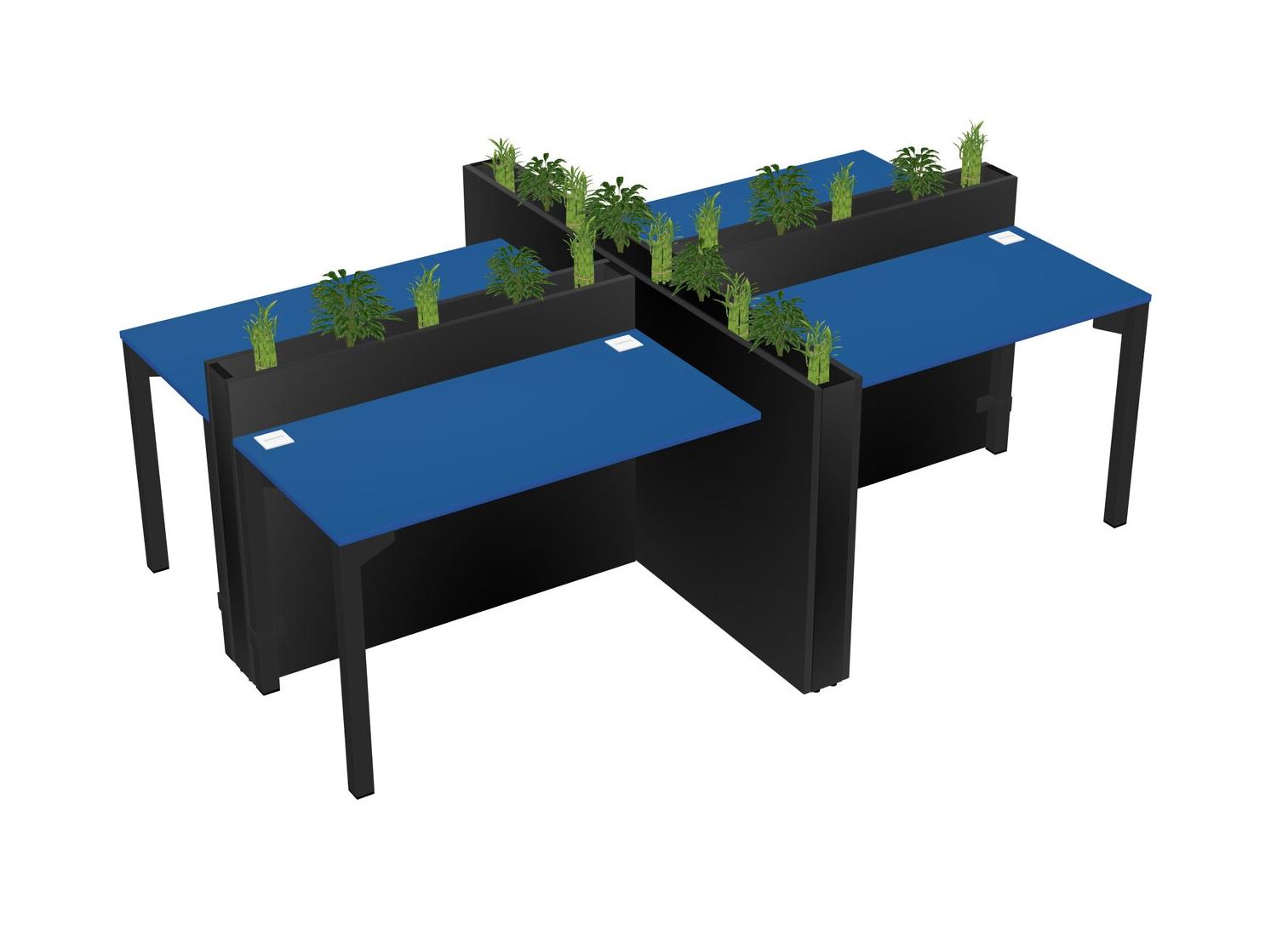 Prism Blue Rectangular Shared Office Desk For 4 Persons Let Nature Help Flourish Your Productivity The Base Comes With An Adjustable Shelf To Provide Space For Pots (Pots & Plants Sold Separately)