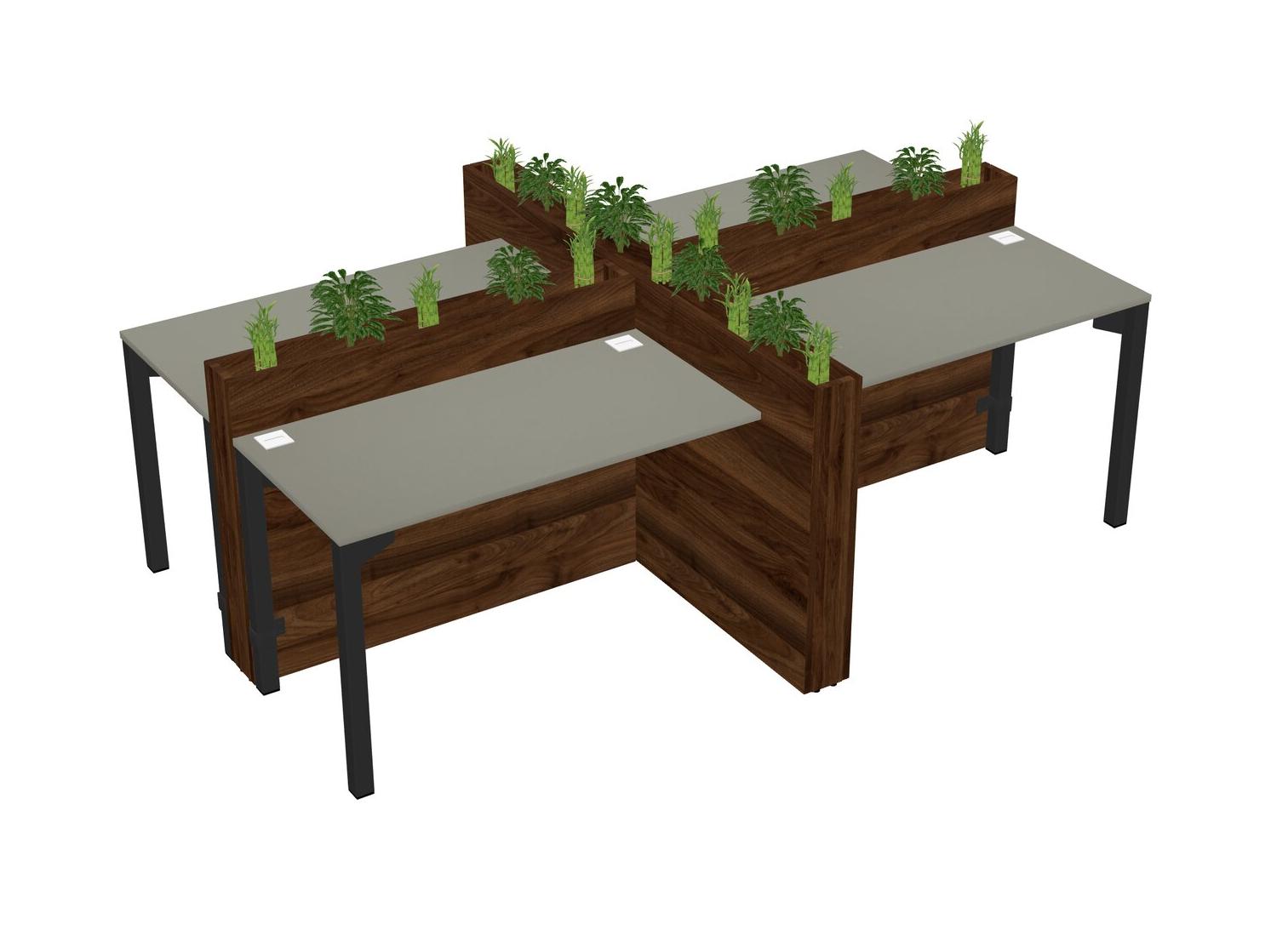 Grey Shadows Rectangular Shared Office Desk For 4 Persons Let Nature Help Flourish Your Productivity The Base Comes With An Adjustable Shelf To Provide Space For Pots (Pots & Plants Sold Separately)