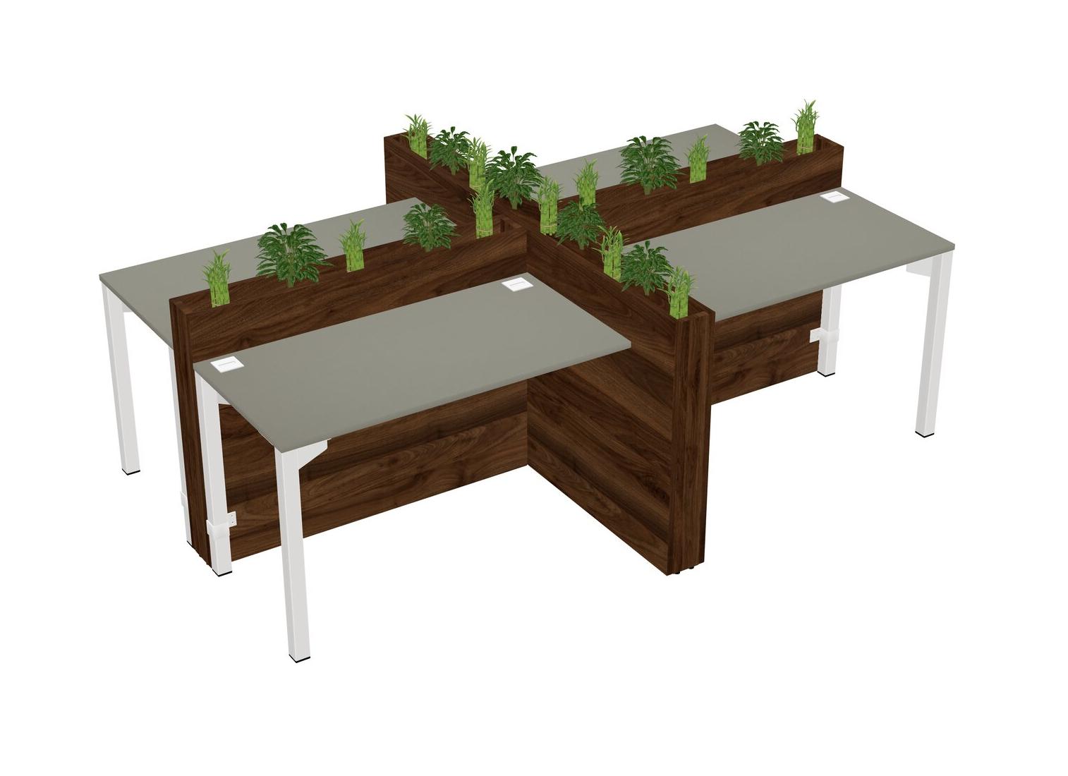 Grey Shadows Rectangular Shared Office Desk For 4 Persons Let Nature Help Flourish Your Productivity The Base Comes With An Adjustable Shelf To Provide Space For Pots (Pots & Plants Sold Separately)