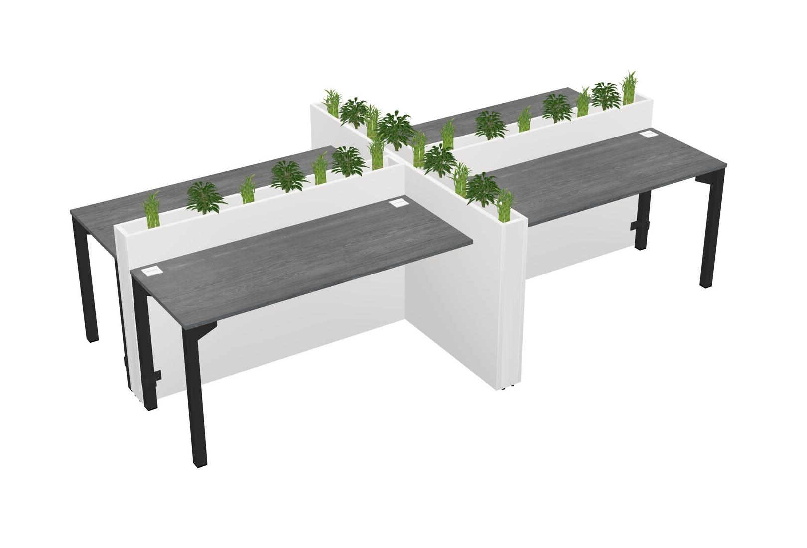 Grey Rectangular Shared Office Desk For 4 Persons Let Nature Help Flourish Your Productivity The Base Comes With An Adjustable Shelf To Provide Space For Pots (Pots & Plants Sold Separately)