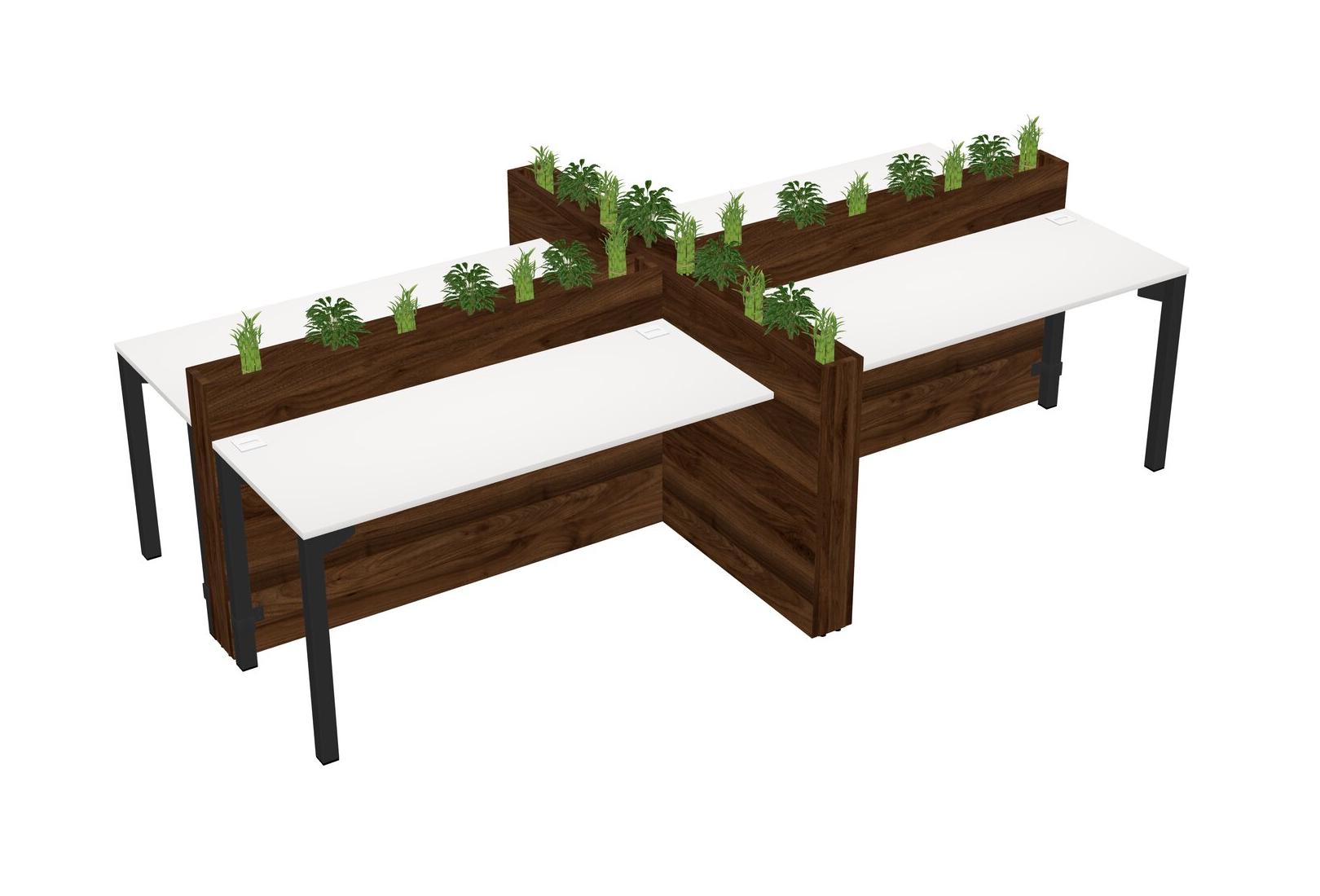 White Rectangular Shared Office Desk For 4 Persons Let Nature Help Flourish Your Productivity The Base Comes With An Adjustable Shelf To Provide Space For Pots (Pots & Plants Sold Separately)