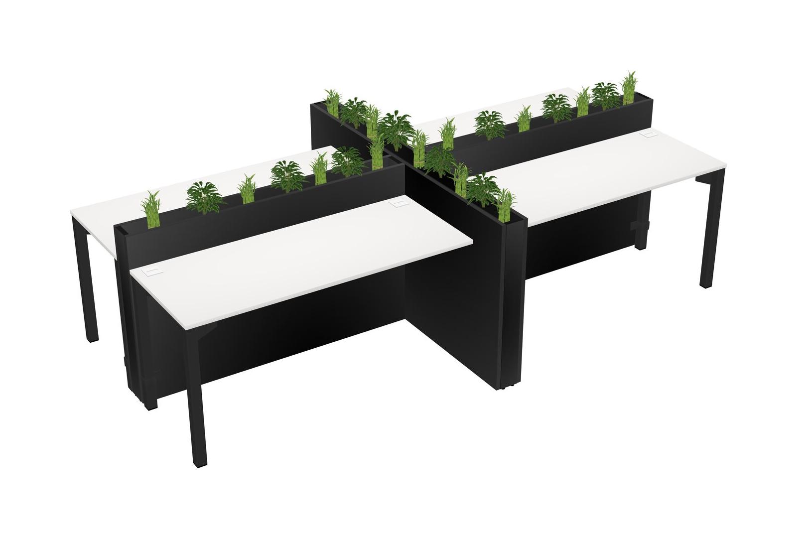 White Rectangular Shared Office Desk For 4 Persons Let Nature Help Flourish Your Productivity The Base Comes With An Adjustable Shelf To Provide Space For Pots (Pots & Plants Sold Separately)