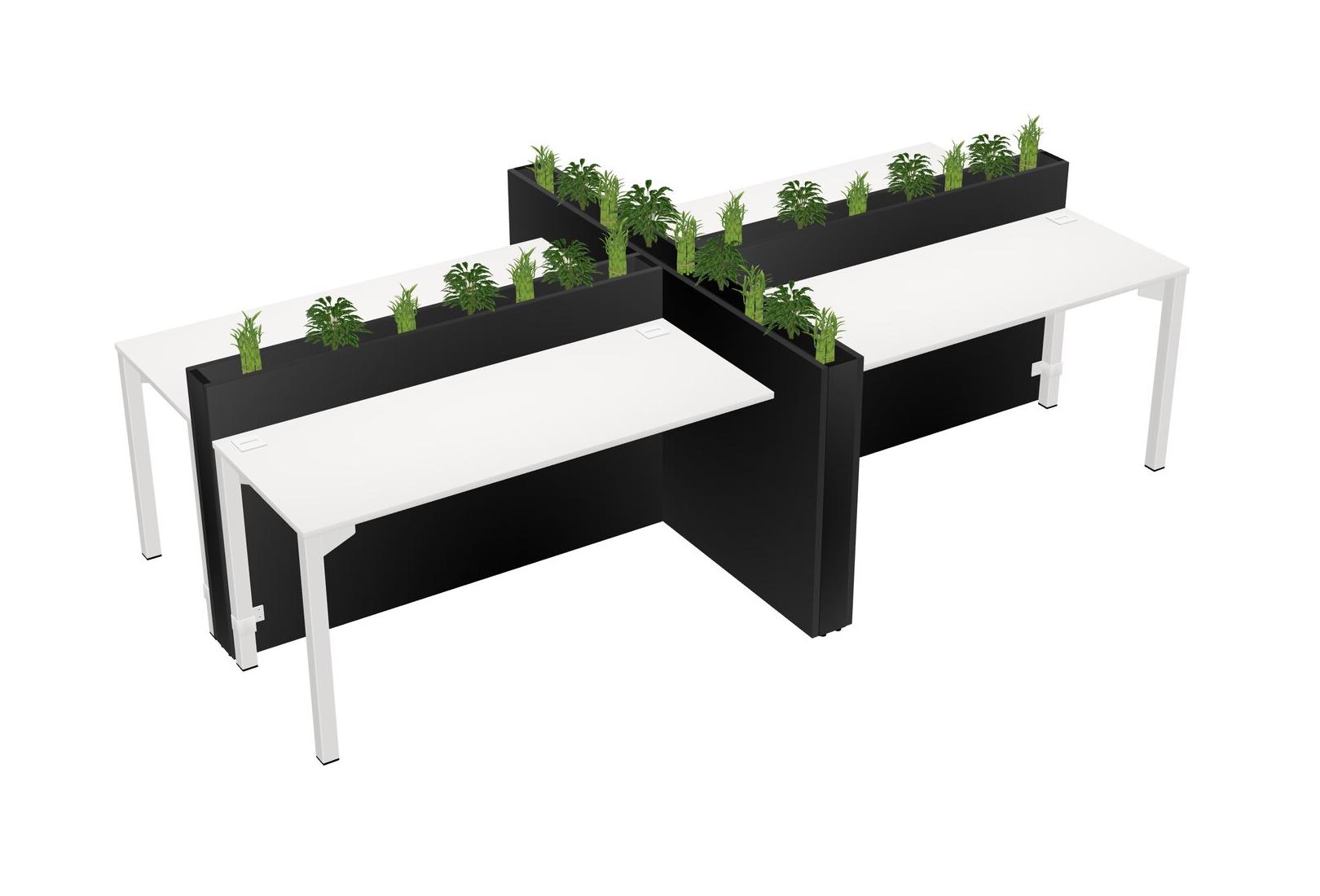 White Rectangular Shared Office Desk For 4 Persons Let Nature Help Flourish Your Productivity The Base Comes With An Adjustable Shelf To Provide Space For Pots (Pots & Plants Sold Separately)