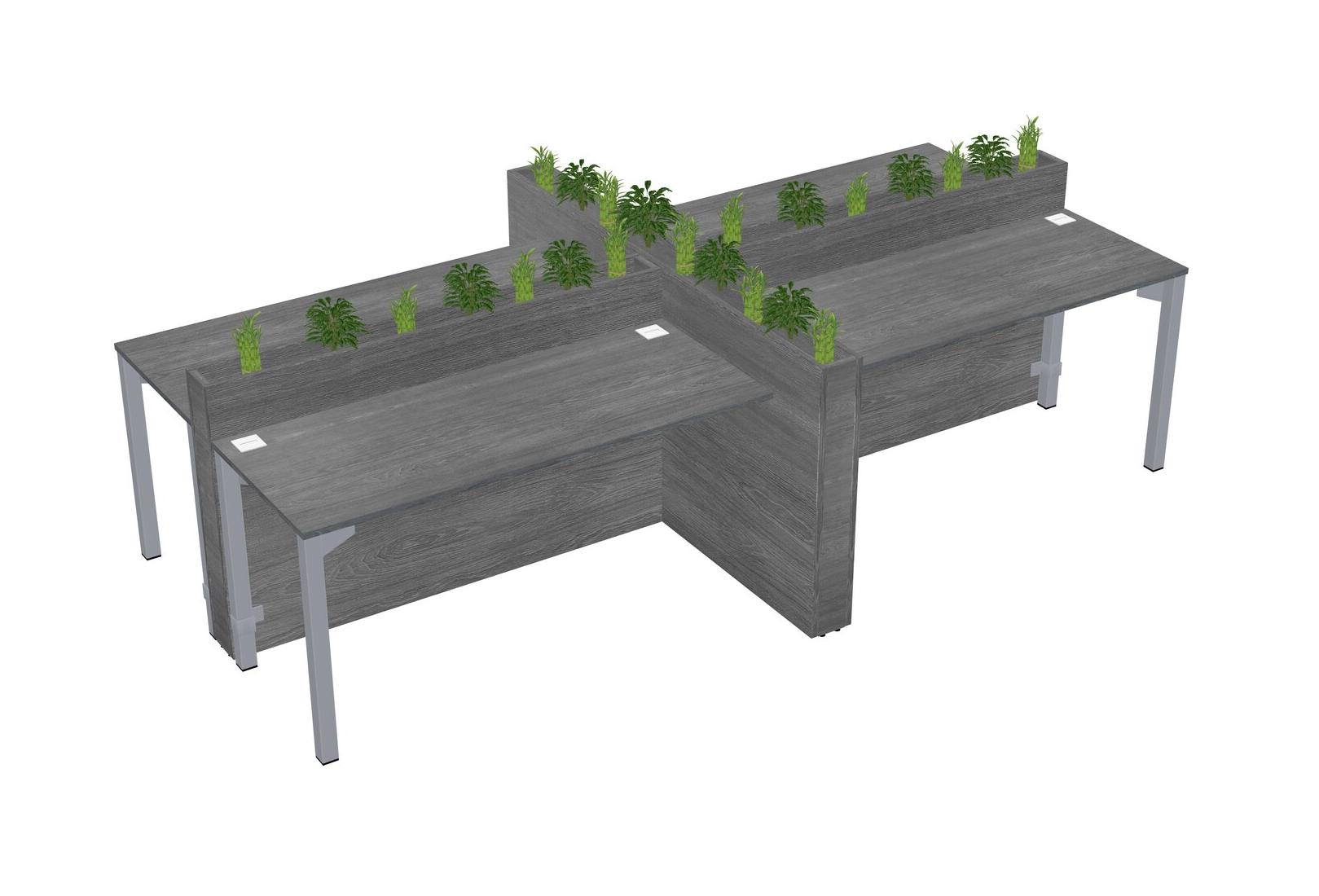 Grey Rectangular Shared Office Desk For 4 Persons Let Nature Help Flourish Your Productivity The Base Comes With An Adjustable Shelf To Provide Space For Pots (Pots & Plants Sold Separately)