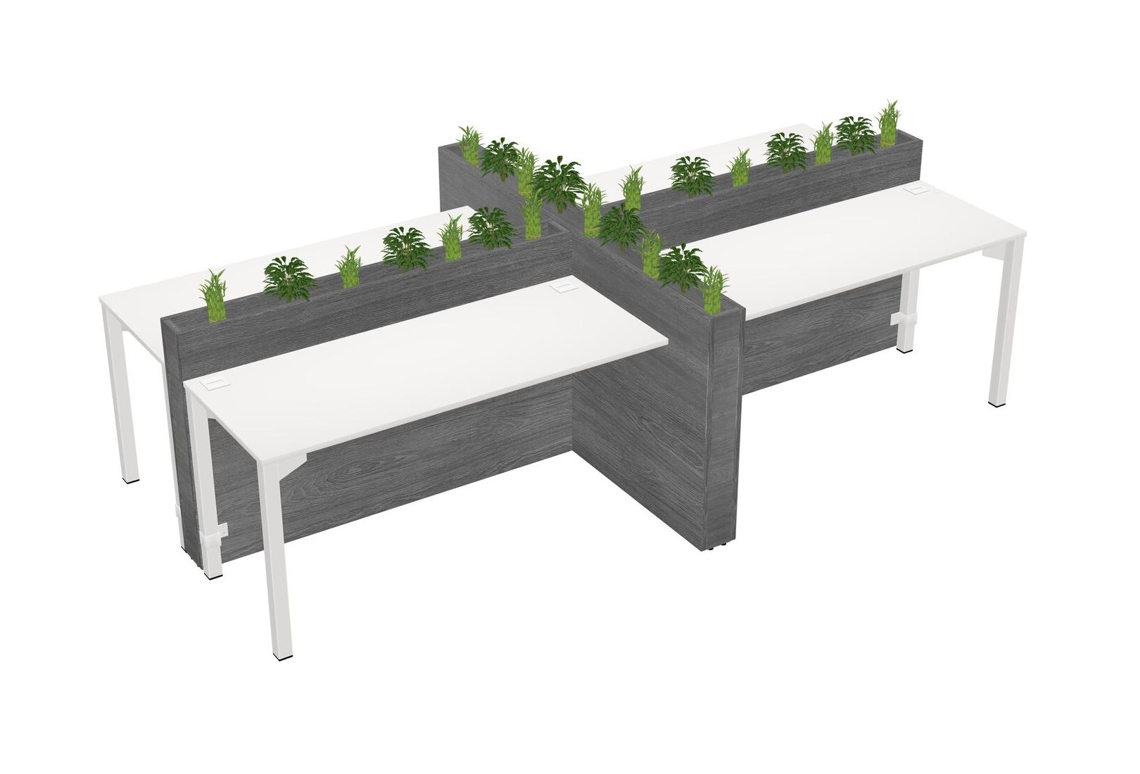 White Rectangular Shared Office Desk For 4 Persons Let Nature Help Flourish Your Productivity The Base Comes With An Adjustable Shelf To Provide Space For Pots (Pots & Plants Sold Separately)