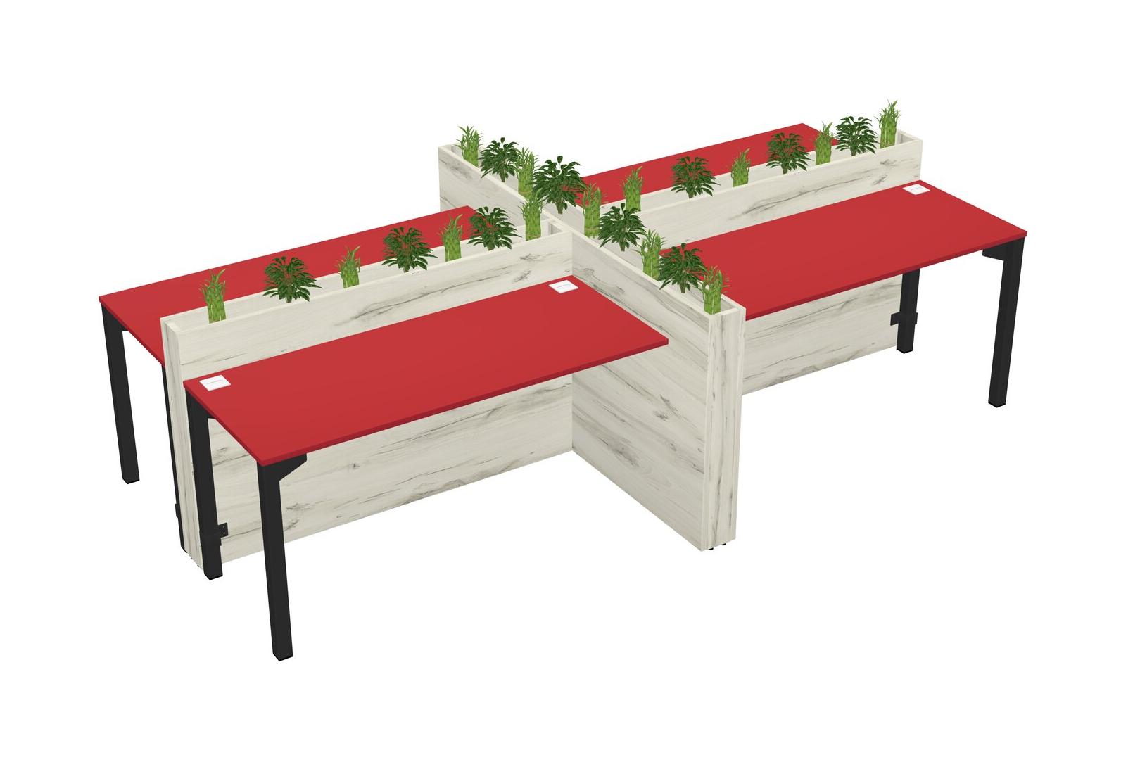 Prism Red Rectangular Shared Office Desk For 4 Persons Let Nature Help Flourish Your Productivity The Base Comes With An Adjustable Shelf To Provide Space For Pots (Pots & Plants Sold Separately)